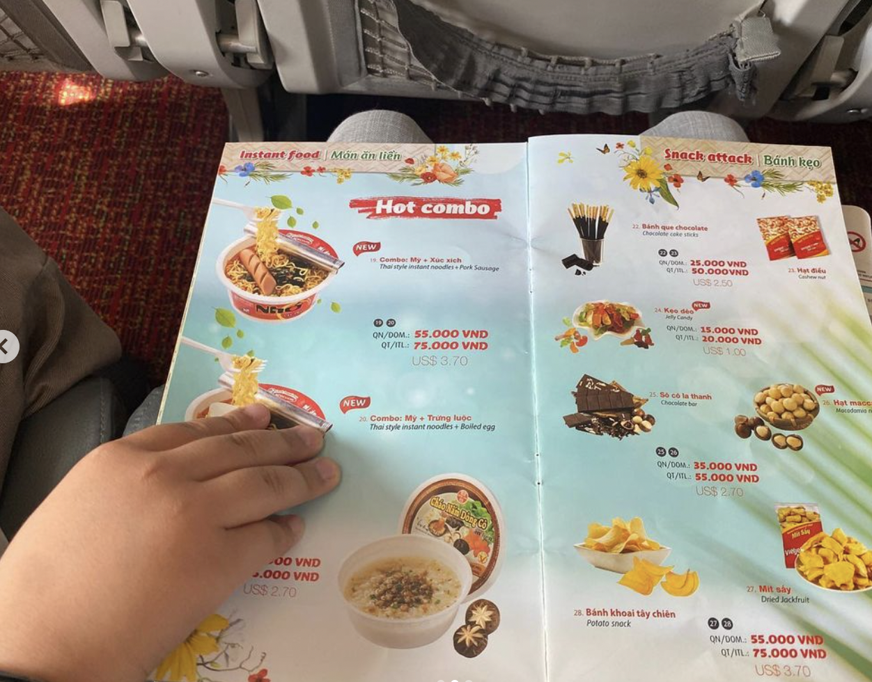 어쨌든 아와의 베트남 여행 1일 차, 비행기에 탑승하고 이륙한 지 30분 정도였다. 앞 좌석에 꽂혀있던 기내 면세품 안내문 같은 브로셔를 요리조리 보던 아이는, 나에게 도시락 하나를 손가락으로 가리키며 배고프다고 했다. 화장품이나 향수 등 면세제품 판매에 대한 안내문이라고 생각했던 브로셔에는 베트남 국숫집에 가면 흔히 볼 수 있는 도시락 사진이 알록달록 실려있었다. 분명 공항에서 나와 함께 팔뚝만 한 치즈 샌드위치를 먹었던 아이 었다.