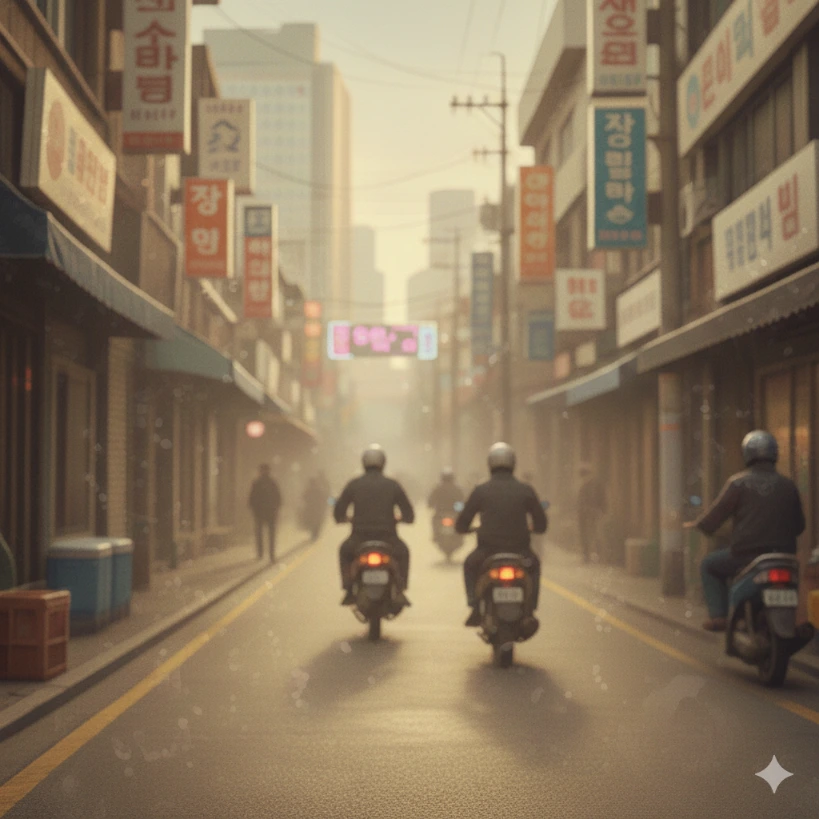 오토바이 탄 배달 기사들