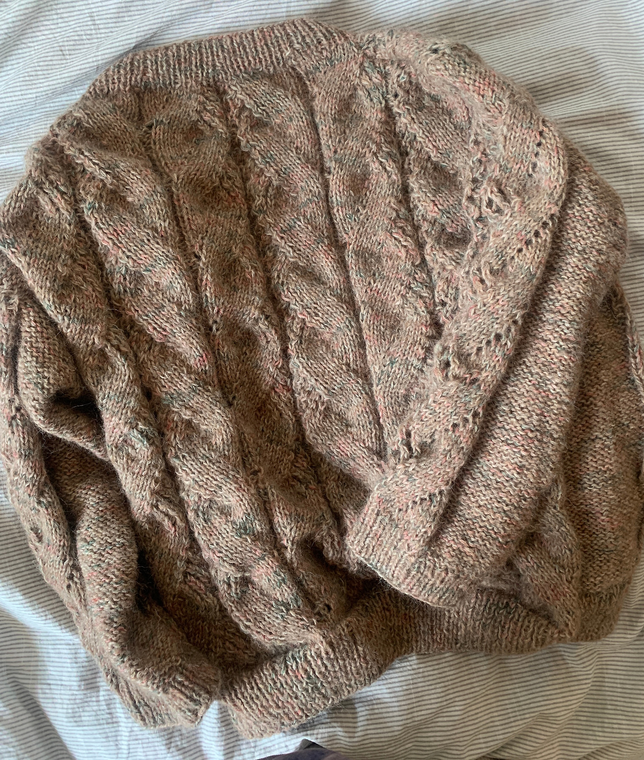 그렇게 만반의 준비를 했어도 나는 도안을 1/3 도 이해하지 못했다. 뜨고 풀고를 반복하고, 던져뒀다가 다시 잡고, 도저히 도안을 이해 못 하는 날에는 그저 머리를 쥐어뜯었다. 그러다가 나는 점점 창작의 영역으로 나아갔다. 어떻게든 떠서 입기만 하자! 나는 목표를 소박하게 수정했다. 전체 과정 중 가장 클라이맥스는 앞, 뒤판을 모두 뜨고 드디어 어깨 이어 붙이기를 하던 중 품이 너무 크다는 걸 인지하고 다 풀어서 다시 시작한 사건이다. 실을 푸는 내내 손이 떨렸다. 내 마음은 분해서 더 떨렸다. 우여곡절 끝에 마무리했지만 아직도 어깨 경사와 넥라인을 제대로 이해하지 못했다. 역시 배움의 길은 멀고도 험했다. 하지만 너무 우습게도 나는 도안의 도식화 하나를 보고 끝까지 뜨는 힘을 얻었다. 연꽃무늬가 몸판에 7단, 소매에 5단. 드라마틱한 문양의 볼륨을 살리고, 옆구리 부분은 소매가 닿는 부분이니까 굳이 무늬는 안 넣어도 되겠다. 이렇게 자의적 해석이 가능하다고? 이쯤 되니 애써서 도안을 왜 구매한 것일까? 의구심이 들었다.