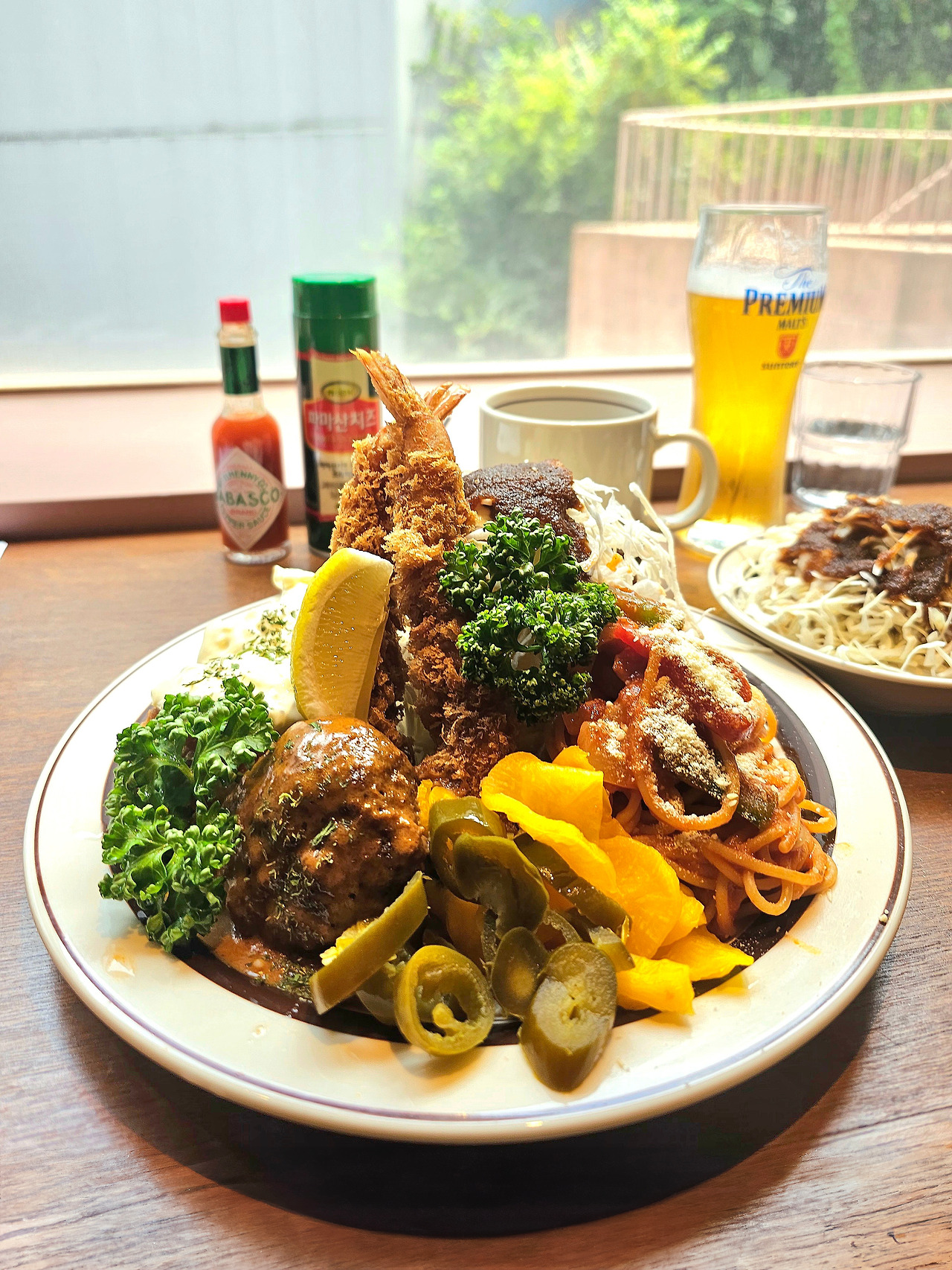 보통 내가 알던 메뉴는 '돈가스' '라면' '된장찌개'처럼 음식 이름 자체가 메뉴가 되는 게 규칙인데 '정식'이라니. 당시에는 그게 참 얼마나 멋지고 고급스럽게 생각됐는지 모른다. 게다가 카펜터의 정식은 좀 더 특별했다. 육향 가득 부드럽게 씹히는 함박스테이크부터 대합이 들어가 해산물의 감칠맛과 치즈가 조화를 이룬 그라탱에 타르타르소스로 뒤덮인 생선가스까지. 제법 훌륭한 요리들이 넓은 접시 위에 펼쳐진다. 너무나 호사스러운 한 끼. 9살 어린 아이가 여길 어떻게 포기할 수 있을까.