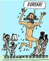 아르키메데스가 외친 ‘유레카’는, 그리스 사람들이 꽉 막혔던 문제가 갑자기 풀리게 되는 상황, 급작스럽게 뭔가를 발견하거나 깨닫게 되는 순간에 내뱉는 “맞아, 이거야!”라는 뜻의 말이다.