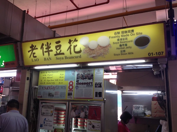 한국에서 왔고 학생이라는 등 간단한 얘기를 주고받다 그와 헤어졌다. 환영받았다는 생각에 신나는 발걸음으로 디저트를 찾았다. 싱가포르에는 빈 커드라는 대중적인 디저트가 있다. 빈 커드는 이름 그대로 콩이 들어간 커드(응고된 우유, 응유)다. Lao Ban Soya Beancurd라는 빈 커드 체인점 스톨을 찾았다. 올드 에어포트 로드 호커센터가 본점이라 들었기에 전부터 와보고 싶었다.