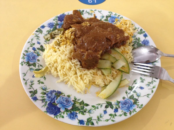 손으로 먹어볼까 수저로 먹을까 따위를 고민하며 자리에 앉았다. 곧이어 맞은편에 한 아저씨가 비리야니를 들고 와 앉는다. 여기선 합석이 일상이니 크게 신경 쓰지 않았다. 혼자 잘 먹고 있는데 내 꼴이 신기했는지 아저씨가 힐끔힐끔 쳐다보았다. 하긴 관광지도 아닌 이런 곳에 혼자 와 비리야니를 먹는 외국인이 흔할 리 없다. 어딘가 어색해 Shiok lah, ‘쥑이네예~’라며 먼저 인사했다. 뜻밖의 싱글리시에 놀란 아저씨는 사람 좋게 웃어 보이며 미소로 답했다.