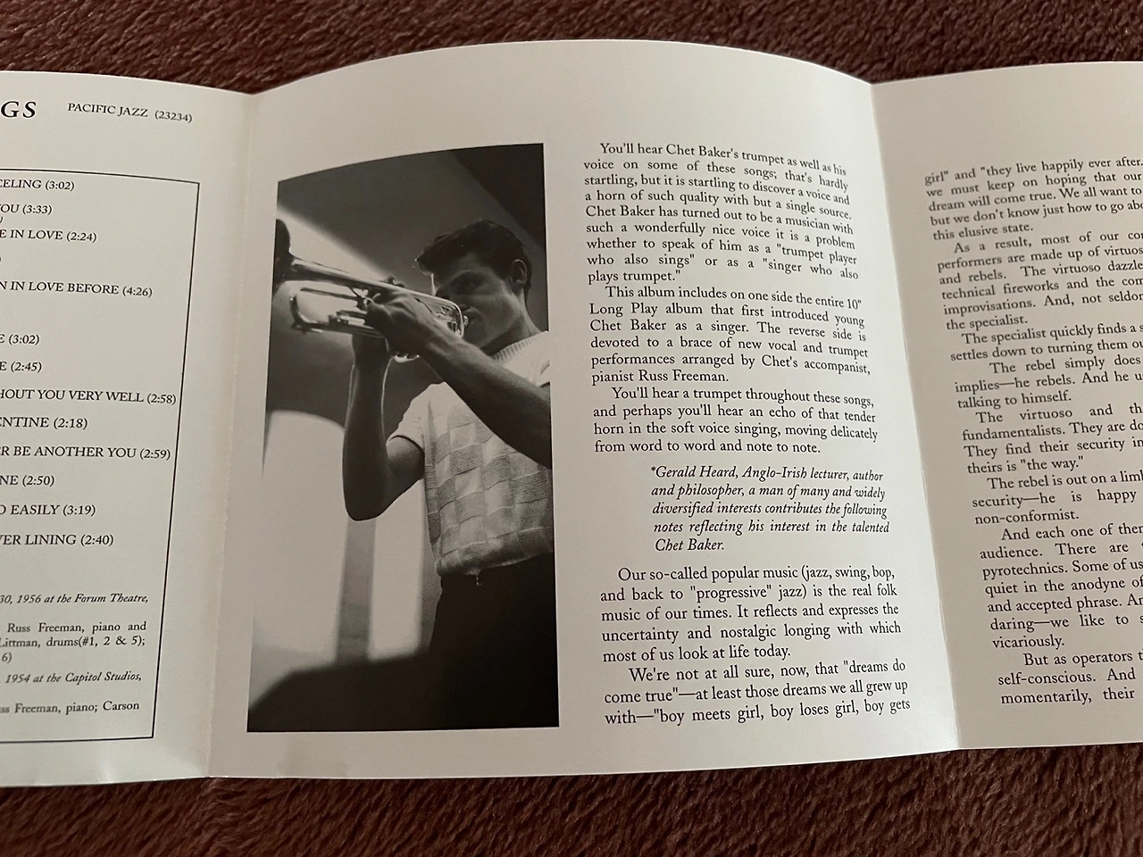50년대 재즈의 한 페이지는 미국 서부에서 불어온, 백인이 연주하는, 대중적인 무드의 쿨재즈다. 이중 쳇 베이커는 반드시 꽤 상단에 볼드체로 적혀있어야 한다. 이지적인 감성을 바탕으로 섬세한 트럼펫 블로잉을 구사하던 그는 당대 쿨재즈의 아이콘이다. 젊은 미남 쳇 베이커의 찬란한 전성기는 이후 무분별한 마약으로 파국에 치닫는 일대기 때문에 안타까운 극적 효과를 더하기도 했다.