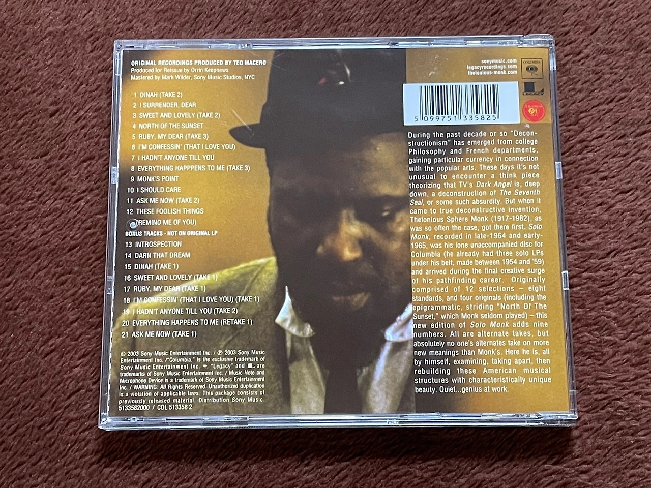 직접 작곡한 <Ruby, My Dear>에서 얄미운 고양이는 실타래 하나 갖고 혼자 잘도 놀다가, 막판에 이르러 마음대로 안 된다고 픽 토라진다. <Monk’s Point>에서 둥근 눈을 굴리며 어디로 튈까 궁리하던 녀석은 자리를 박차고 이리저리 쏘다니더니 아무 일도 없었다는 듯 슬그머니 돌아온다. 그의 작곡은 아니지만 친숙한 멜로디의 <I’m Confessin’ (That I Love You)>은 나도 모르는 사이 다가와 부비적거리는 고양이처럼 포근한 발라드다.