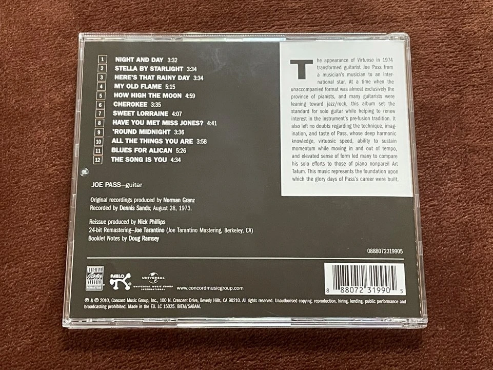 <Virtuoso> 트랙 하나하나, 매 순간마다 조 패스의 터치가 진득하게 묻어있다. 스탠더드를 모은 앨범인 만큼 다른 아티스트, 특히 캄보 편성이 연주한 버전과 차이를 느끼는 재미가 크다. 10번 트랙 <All the Things You Are>의 익을 대로 익은 완급 조절과 변죽을 울리는 뻔뻔함은 만나본 적 없는 그의 유머를 떠올리게 한다. 또한 5번 트랙 <How High the Moon>에선 잊을만하면 찾아오는 아슬아슬한 오른손 속주가 맛깔난다. 멤버 없이 혼자 연주하는 만큼 틀리면 바로 티가 나지 않을까 괜히 듣는 이만 애탄다. 의외의 이유로 긴장감이 배가되는 게 또 다른 감상 포인트다.