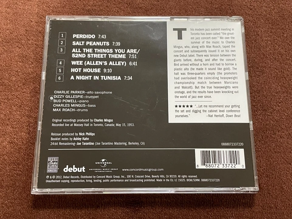 누군가 비밥이 무엇이냐 묻거든 고갤 들어 이 앨범을 보게 하라. 다시 즉흥연주가 무엇이냐 묻거든 들려줄 앨범, <Live at Massey Hall>이다.