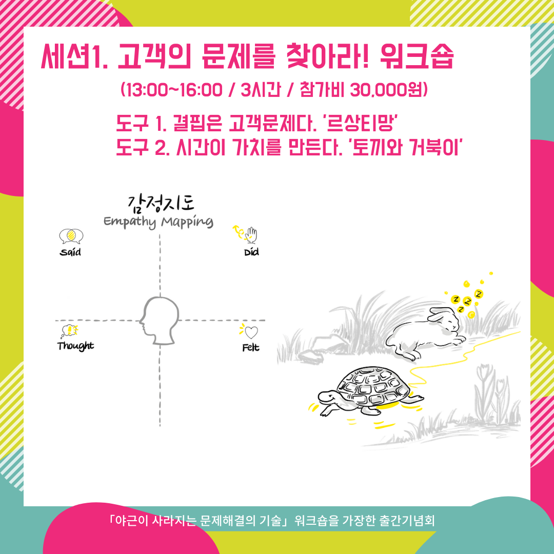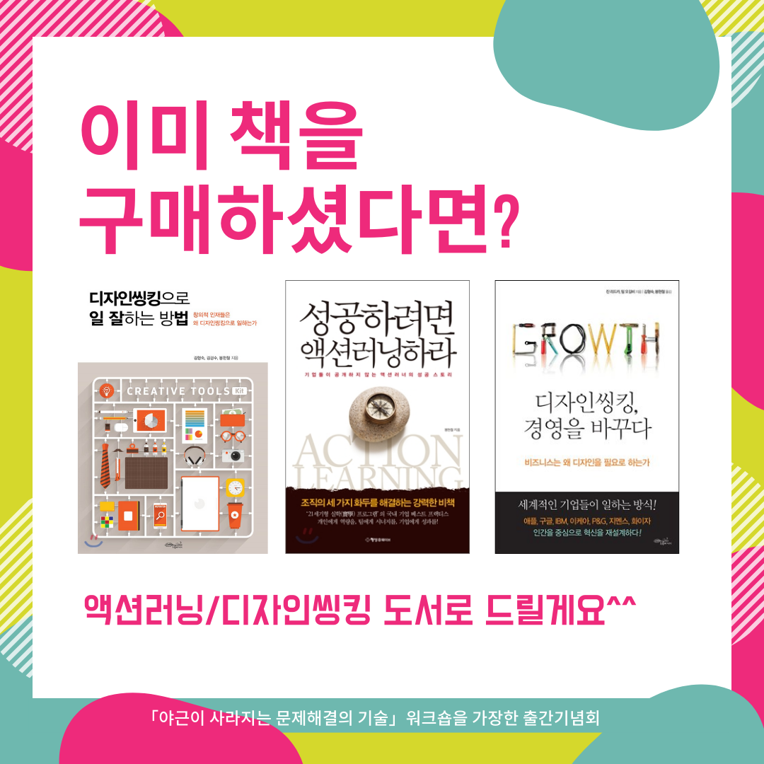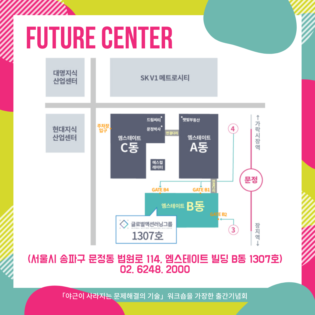 안녕하세요, 워크숍을 가장한 출간기념회에 오신것을 환영합니다^^ 하단의 내용을 작성해주시면 신청이 완료 됩니다. 그럼 8월 25일에 퓨처센터에서 기다리고 있겠습니다^^