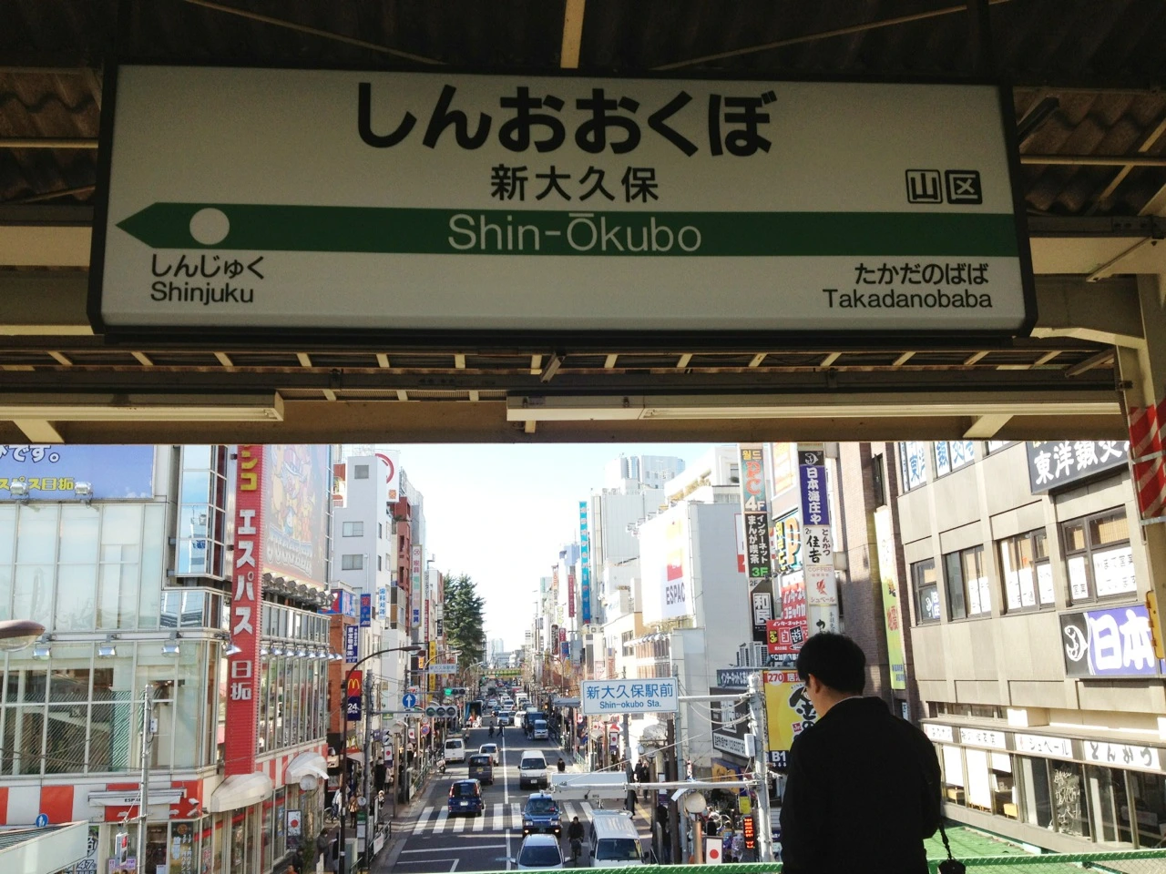 오쿠보역에서 신오쿠보역을 지나면 한인타운이 이어진다. 한국음식과 한국 화장품 가게 한국 슈퍼들이 골목골목을 메우고 있다. 신라면이나 소주는 한국 가격과 별반 다를 바 없이 판매될 정도에 걸어가면서 일본어보다 한국어를 더 많이 듣게 되는 거리이기도 하다.
