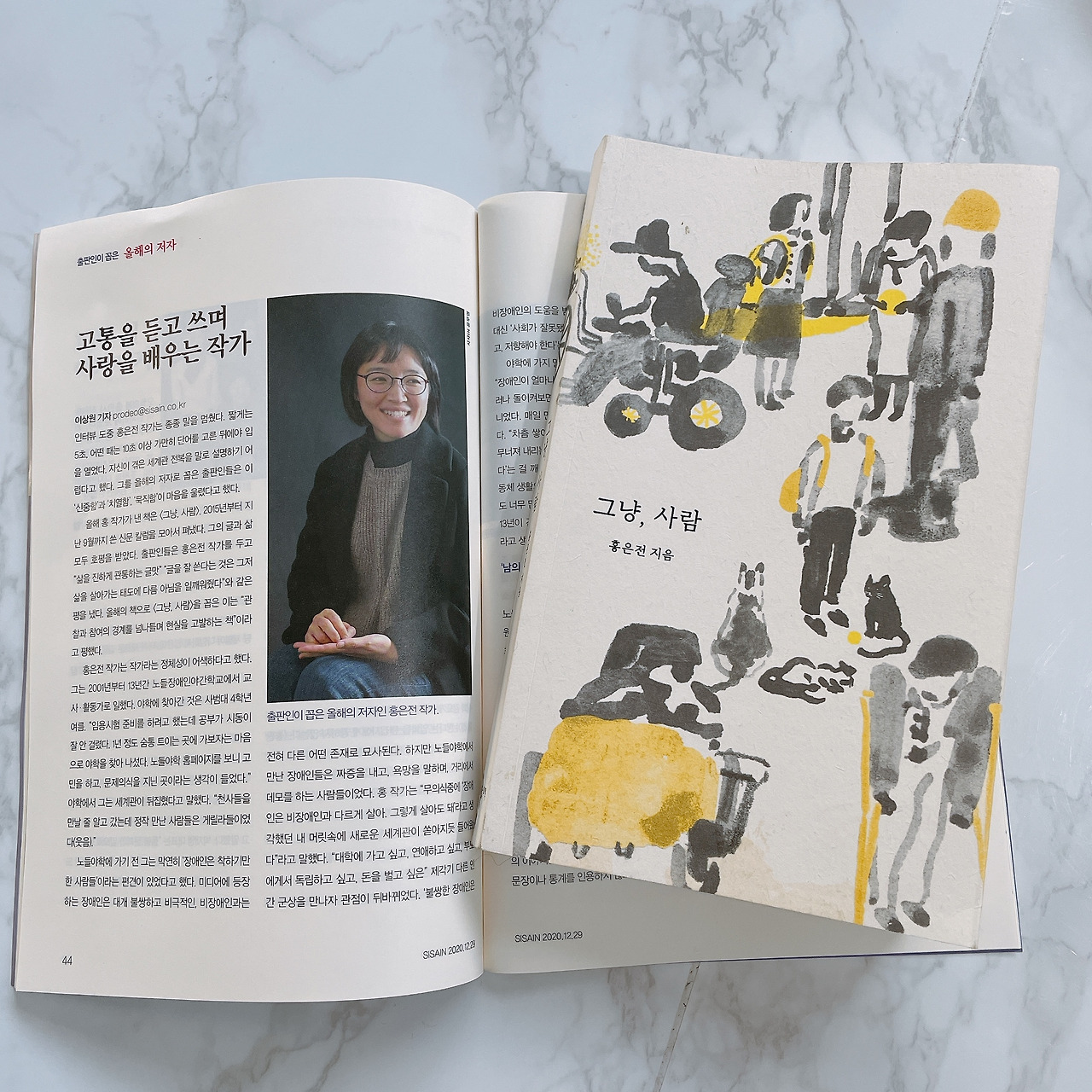 한참을 각자의 책에 집중해 있는데 S가 벌떡 일어났다. 이런 순간이 필요하다며 스마트 와치를 사용해서 몇 분에 한 번씩 일어나 스트레칭을 하고 가볍게 걷고 다시 책을 집었다. 등을 벽에 기대지 않고 앉는 내 자세에 불편함을 느꼈는지 등을 댈 수 있는 자리로 옮기라고 이야기했지만 나는 잘 눕지도 않지만, 잘 기대지도 않는 사람이라 이대로가 좋다고 이야기했다. 참 다른 서로에 웃음이 나는 관계의 우리는 금세 각자의 책에 빠져 들었다. 잡고 있던 책을 다 읽고 너무 좋은데, 너무 무겁다고 했더니 가져온 시사인의 부록에 2020년 올해의 책에서 봤다고 하며 페이지를 펼쳐 보였다. 이 책은 2020년 시사인이 선정한 올해의 책에서 출판인이 꼽은 올해의 저자의 책이었고, 독서리더가 뽑은 올해의 책에도 선정된 책이었다.