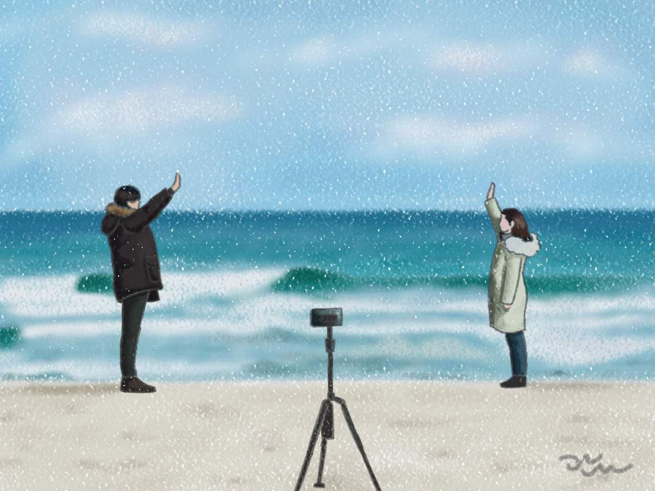 보이지는 않지만 서로 웃고 있음을