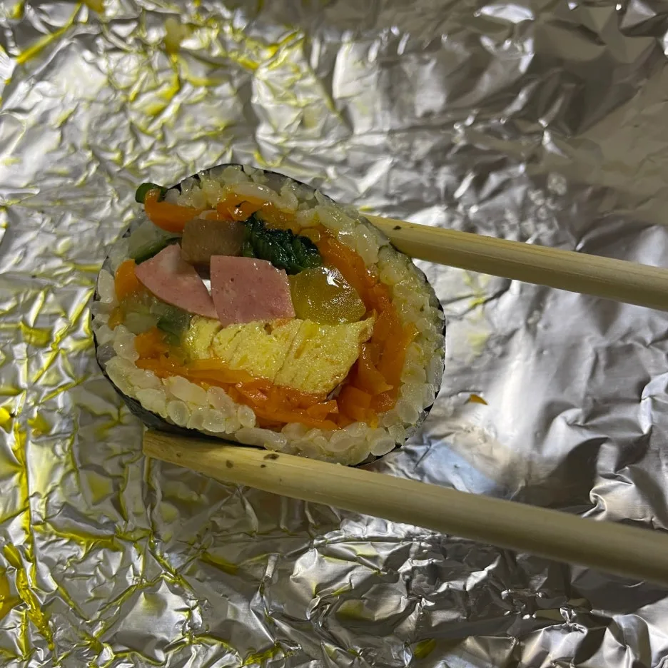 늦었지만 저녁으로 먹으라고 지부장님이 그 시간 유일하게 배달이 되는 한식당에서 김밥을 주문해 주셨다(부족할까 봐 무려 치킨버거까지..!) 피곤해서 씻으면 바로 잘 수 있을 것만 같았는데 참기름 냄새가 피곤함을 뚫고 코를 자극하자 김밥 한 줄은 순식간에 뱃속으로 사라졌다. 마지막 한 입을 먹기 전 아차 싶어서 사진을 찍었다. 몽골에서의 첫 끼가 김밥이라니 웃음도 났다.