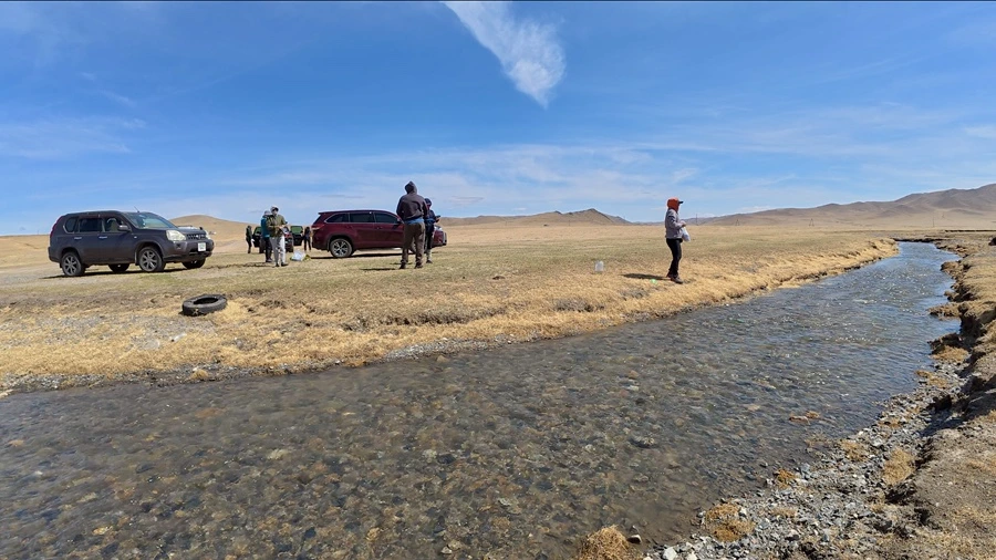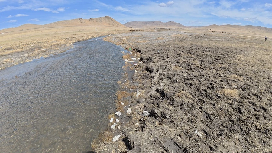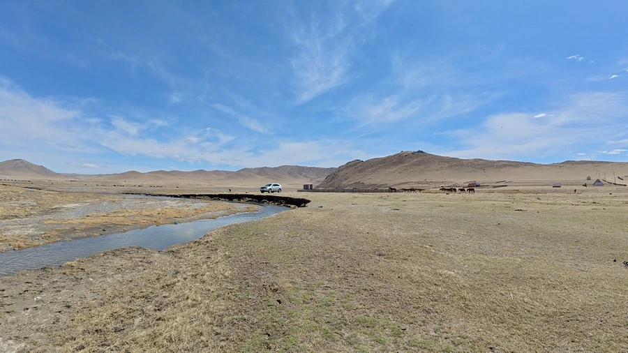 엥? 강이라고 해서 좀 거대한 물줄기를 생각했는데! 이건 그냥 우리 동네에 있는 도랑 정도의 수량인 것 같다. 그도 그럴 것이 올해 아직 한 번도 비가 오지 않았단다. 비가 한번 왕창 와야 물을 흠뻑 먹은 식물들이 초록 잎을 내기 시작할 텐데… 몽골 하면 떠오르는 푸른 초원은 딱 6~8월, 여름 3개월뿐이다. 나머지는 이토록 삭막한걸.