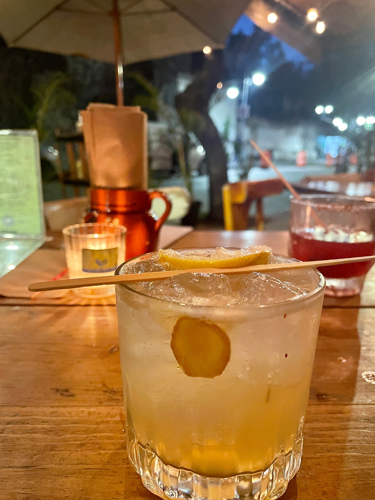 A는 여기 오면 항상 마시는 거라며 딸기 + 크랜베리 + 블랙베리와 민트, 진저에일이 들어간 달콤한 maldad(악마, 반쯤 마신 뒤쪽의 잔)를 주문했다. 나의 시작은 진저에일 + 라임 주스 + 오이 + 페퍼민트가 들어간 costa esmeralda(에메랄드빛 바다) 그리고 이어서 진저에일 + 레몬 + 생강 + 아가베 시럽이 들어간 moises(모세, 사진 속).