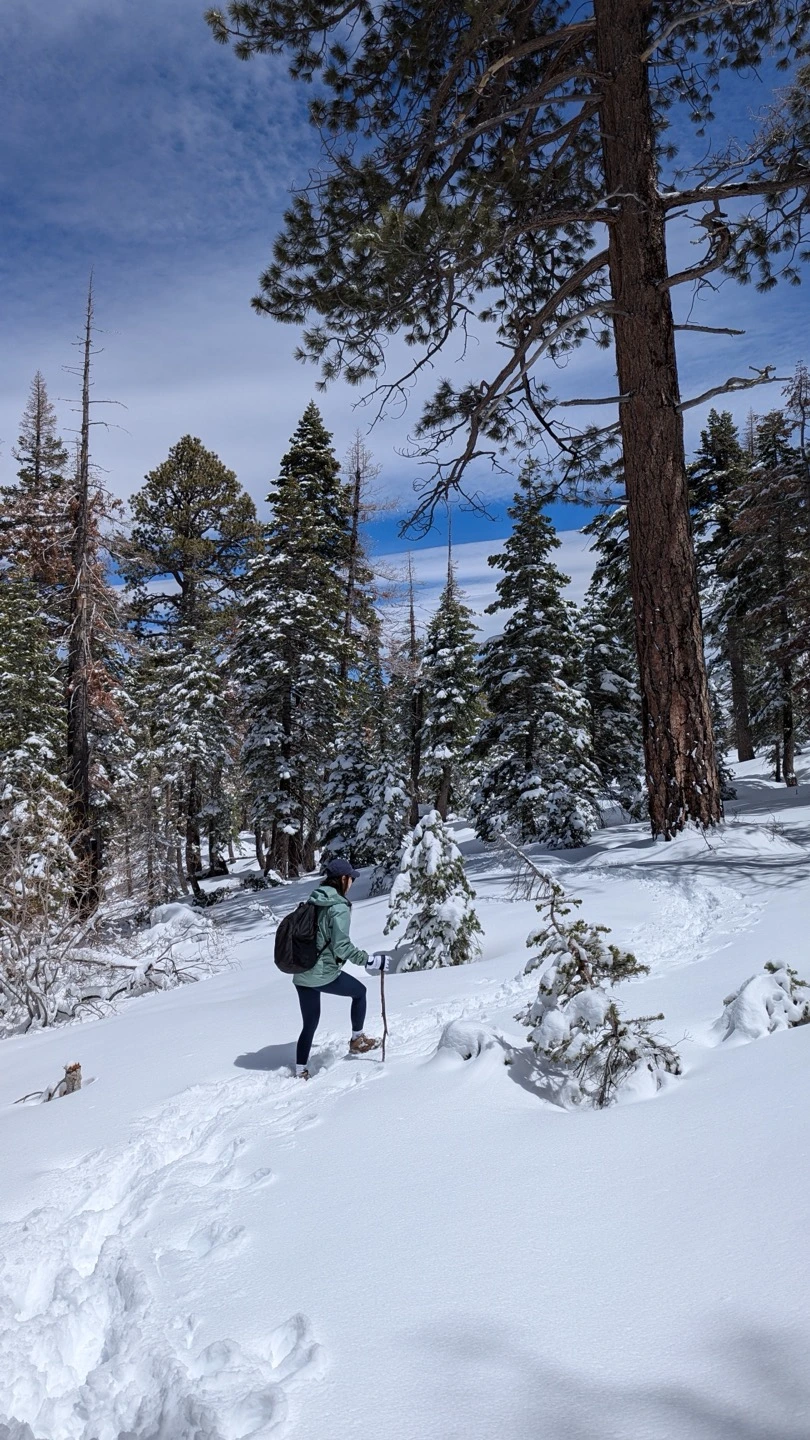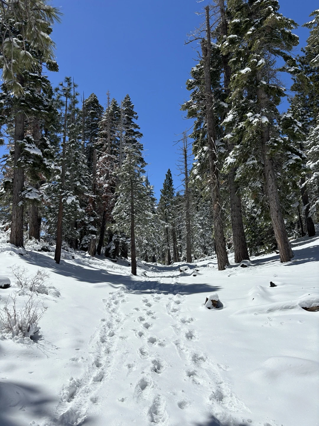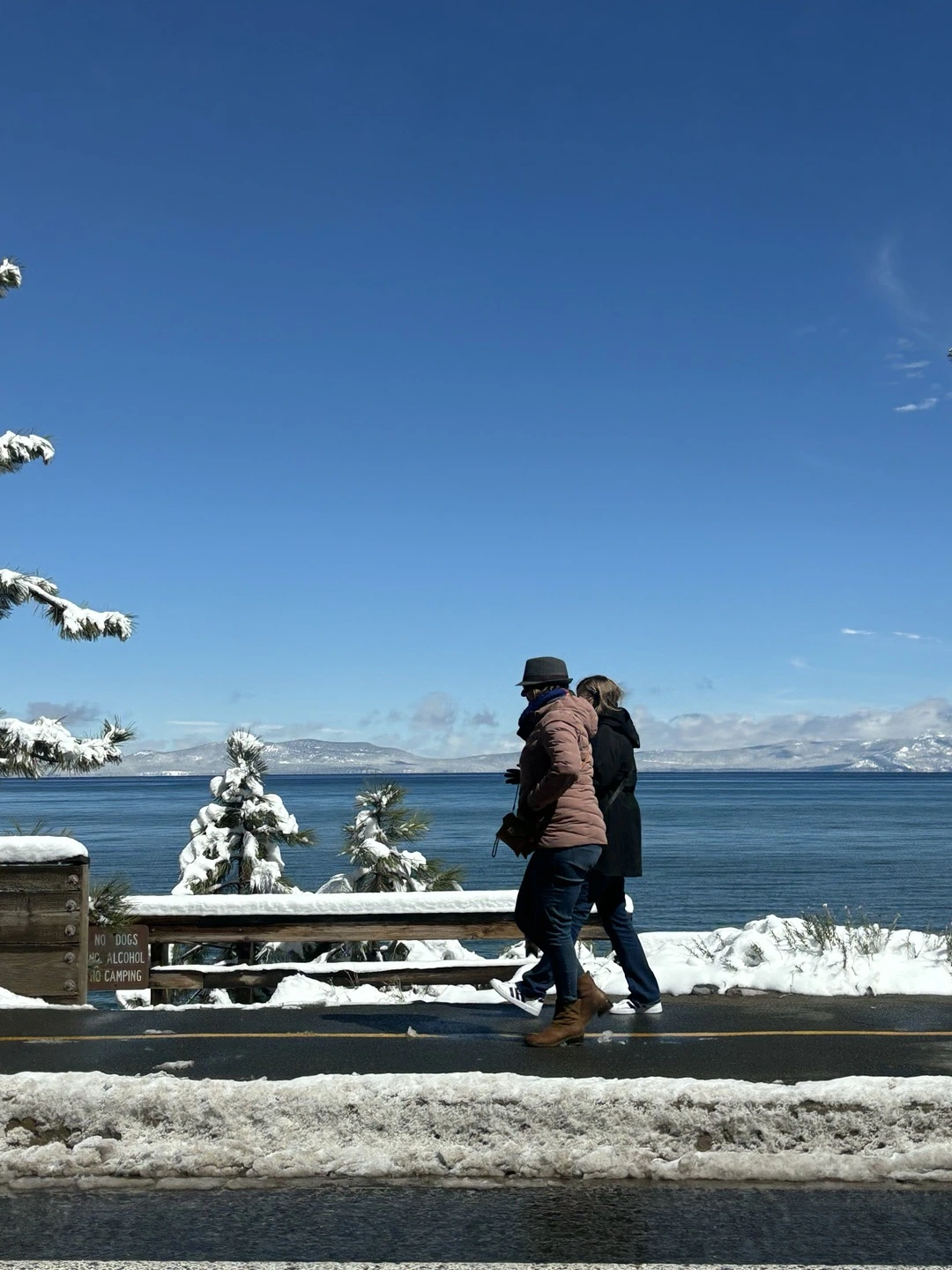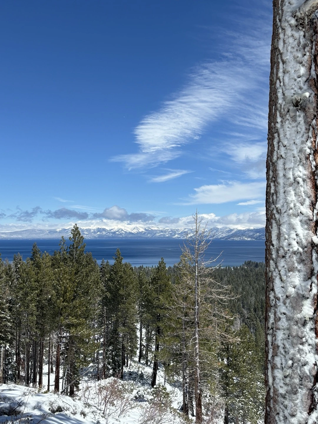 마침내 타호에 도착한 후엔 예정대로 하이킹을 하기 위해 등산로를 찾았다. 당연하게도 눈이 잔뜩 쌓여있어 발이 푹푹 빠졌지만 앞서 간 누군가가 남긴 발자국에 걸음을 맞추며 산을 올랐고 이내 눈앞에 펼쳐진 사방이 눈으로 덮인 타호 호수가 펼쳐졌다. 시리도록 청명했던 하늘과, 못지않게 푸른 호수는 잠시나마 추위마저 잊게 할 정도로 아름다웠다.