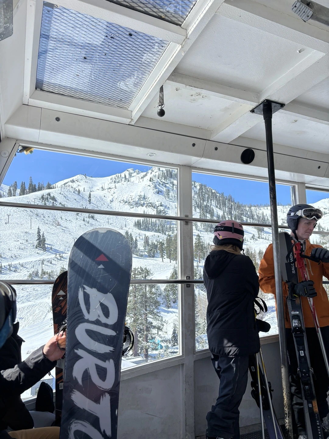 당연히 스키는 예상 액티비티 목록에 없었던지라 머리부터 발끝까지 모든 장비를 다 빌리고 스키장에 발을 들이니 생각보다 사람들이 꽤 보였다. 곤돌라를 타고 올라가 마침내 첫 발을 디딘 슬로프는 폭설 덕에 기대 이상으로 상태가 좋았고, 타호 호수가 내려다 보이는 슬로포의 뷰는 단연 유일무이에 가까웠다. 지난 1월 미국 북동쪽의 버몬트 주에서 방문했던 스키장은 Icy east coast라는 별명에 걸맞게 다소 설질이 딱딱했는데, 5월의 캘리포니아에서 오히려 푹신한 눈 위의 스키를 즐길 수 있었다. 그렇게 네 시간 반 동안 열심히 곤돌라와 리프트를 오가며 스키장을 누볐고, 렌털샵 사장님이 말씀해 주신 대로 구름 한 점 없는 청명한 하늘 아래 맞닿아 있는 팰리사이드 산자락을 온몸으로 느끼고 왔다.