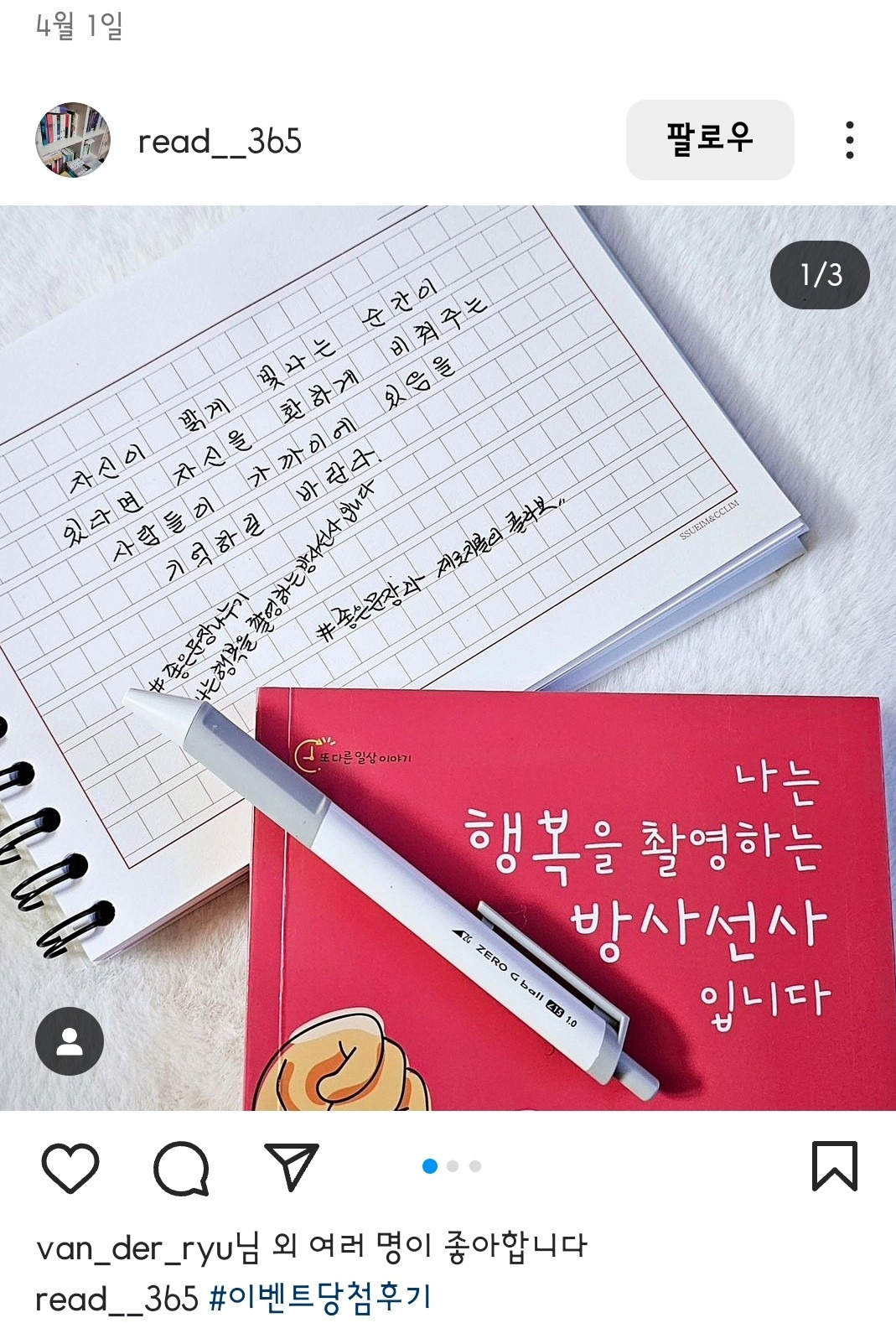 2024년 봄, 저의 첫 책 《나는 행복을 촬영하는 방사선사입니다》가 세상에 나온 직후 인스타에 멋진 필사 사진이 올라왔습니다.