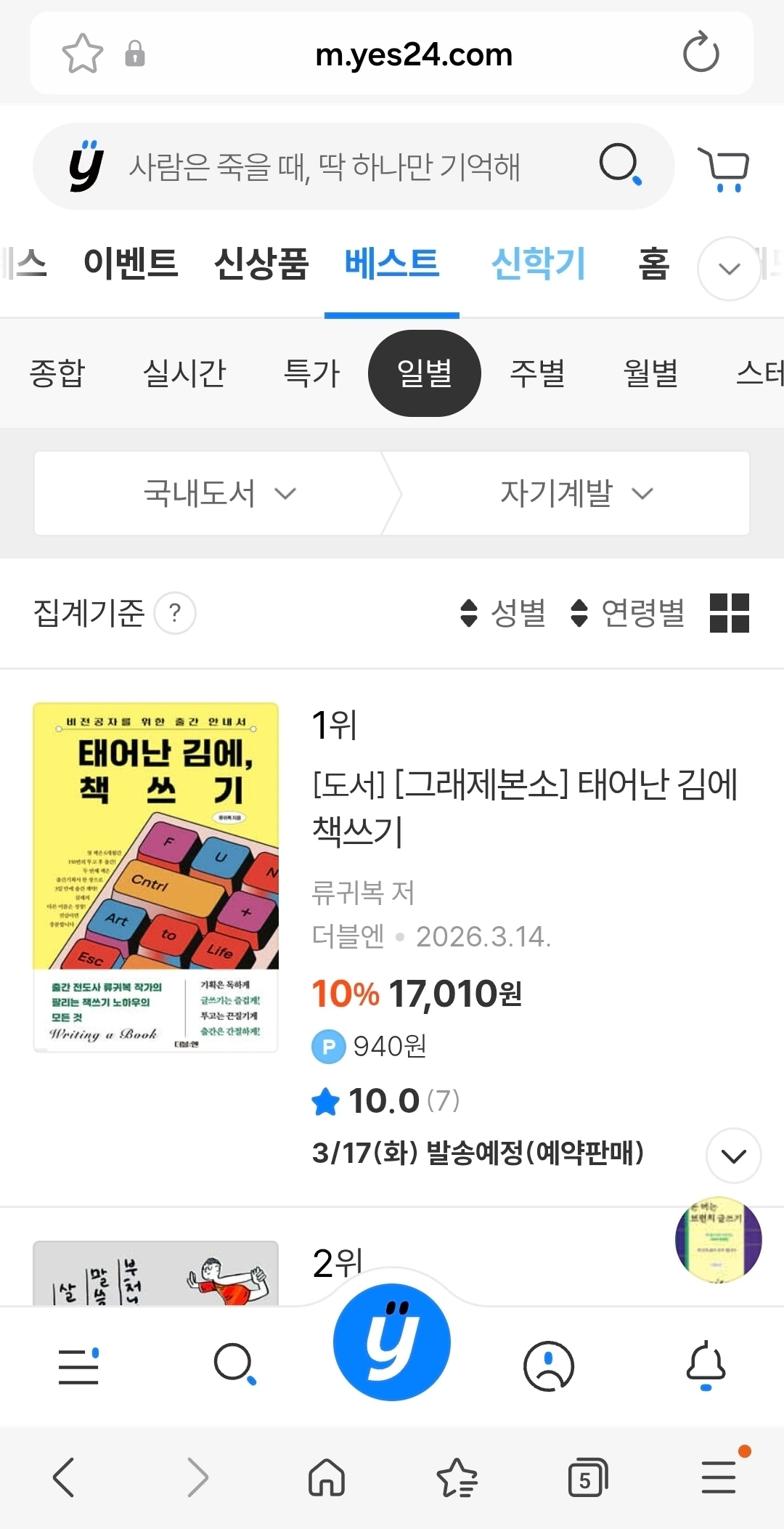 "정식 판매 첫날, 국내도서 130위!"