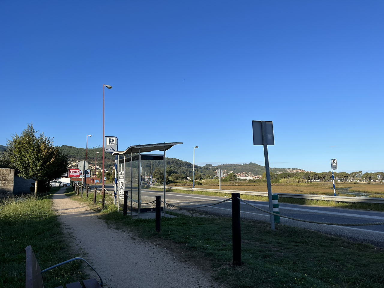 이틀간 조금 규모가 있는 Vigo에 머물려던 계획은 변경되어서(큰 도시는 되려 볼 게 없다는 에릭(스페인)의 말에 혹해서) Sabaris에서 버스를 타고 Vigo를 가서 Vigo에서 Redoldela-Picota까지 기차를 타고 알베르게가 있는 Cesantes로 가기로 했다. 8:08에 Vigo로 가는 버스가 있다길래 구글맵이 알려주는 곳에 10분 정도 전에 가서 서있었는데 아무리 봐도 바스 정류장 같지 않지만 이른 아침이라 딱히 물어볼 사람도 없다, 지나가는 사람들은 대부분 순례자들인지라 물어도 알 것 같지도 않고.