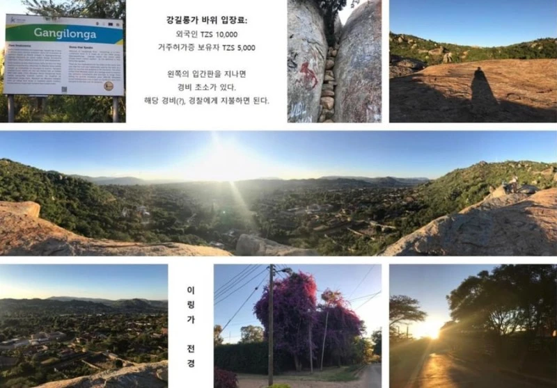 강길롱가 바위는 외국인들에게는 조금 알려져 있으나, 현지인들은 잘 모를 수도 있기 때문에 여러 번 물어보고 길을 아는 보다보다와 함께 간다. 나의 경우에는 처음엔 강길롱가 호텔(?)로 데려가서 다시 설명을 해줘야 했다. 어쨌든 강길롱가 바위에 도착하면 입장료를 내야 하는데 거주 허가증 소유자에 한해 TZS 5,000 실링을 낸다. 아마 외국인은 TZS 10,000 실링이었던 듯. 현지인은 무료로 들여보내준다. 개도국은 자국민/외국인의 가격 차이가 심한데 하나하나 얘기하자면 밑도 끝도 없이 글이 장황해지니 여기서는 생략한다.