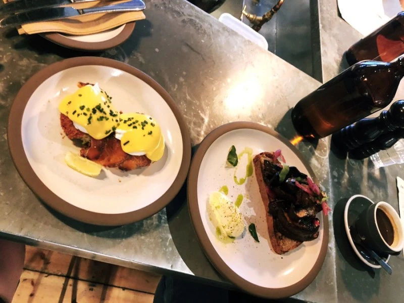 다음날, 아침 일찍 핫하다는 쇼디치로! 친구가 추천해 준 Ozone coffee로 가서 친구가 추천해 준 대로 음식 시키기!!! 에그 베네딕트와 연어, 그리고 머시룸. 자극적이지 않은 맛, 에그 베네딕트에 깔려있는 크로켓이 인상적이었다. 아침부터 거나한 한상차림을 받은 느낌. 양이 적다는 얘기를 어떤 블로그에서 봤는데 아침을 잘 안 먹는 나로선 딱 적당한 선이었다.