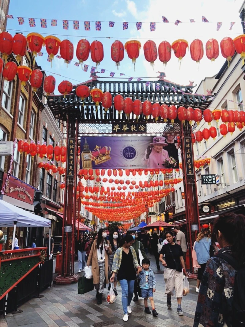 차이나 타운은 어느 나라를 가더라도 중국 중국 한 빨간 등이 달려있다. 그리고 사람이 아주 많고 밀집도가 아주 높다! 런던에서도 어김없이 그런 형태를 갖추고 있었다.