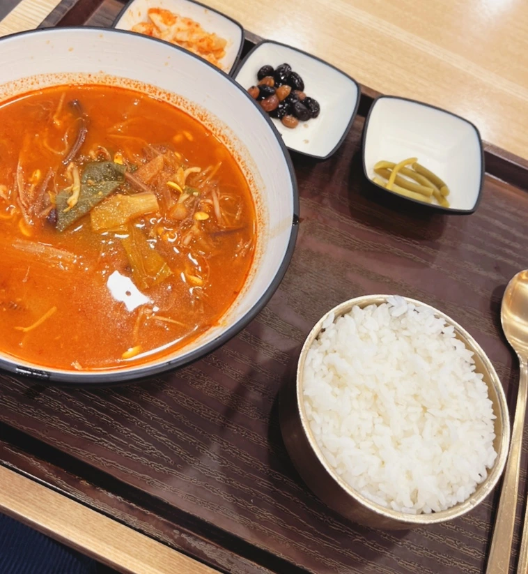 한국엔 도착하자마자 빛이 쨍한 느낌이다. 그도 그럴 게 덴마크는 아주 심한 극야에다 집이나 레스토랑도 주황색 불빛의 빛이 강하지 않은 불빛을 위주로 사용하기 때문에... 너무 밝은 빛에 적응이 쉽지 않은 찰나, 일단 점심을 먹기로 했다. 조식으로 나온 샌드위치와 요구르트 중 간단히 요구르트만 먹은 상태라 배가 많이 고팠다. 도착 게이트를 빠져나오자마자 바로 눈앞에 보이는 한식점으로 들어가서 장터 국밥을 한 그릇 시켰다. 특별할 것 없는 정말 기본적인 음식인데도 왜 이렇게 맛있나. 2년 반 만에 나름 제대로 된 한식이라 그런가. 좀 맵긴 해도 맛있게 잘 먹었다.