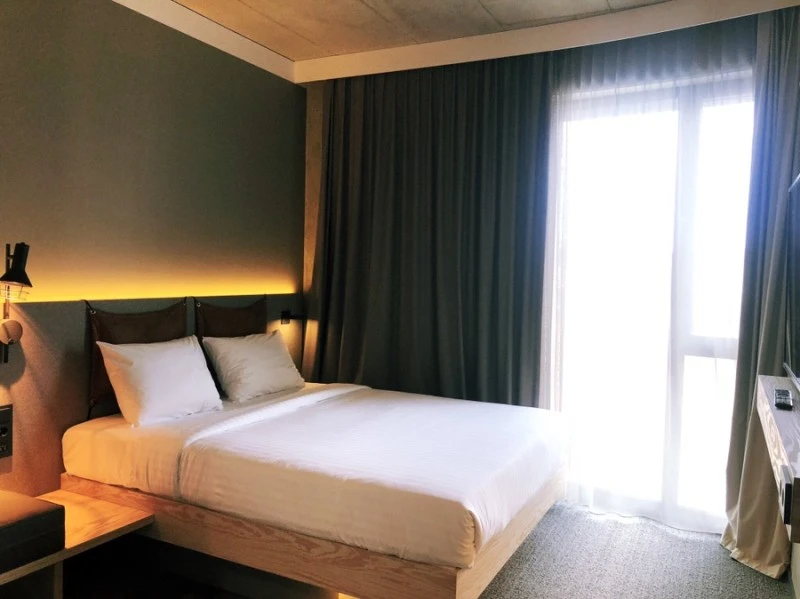 Moxy라는 이름의 숙소인데 힙한 느낌의! 그에 걸맞게 객실도 힙한 부분을 많이 찾을 수 있었다. 그중 가장 마음에 들었던 건 침대 밑 간접 조명에 센서가 있어서 불 다 꺼놓고 화장실 가거나 움직일 때 켜지던:) 별 것 아닌 것 같지만 세심한 배려가 명품을 만든다는 느낌이 확 들었다.