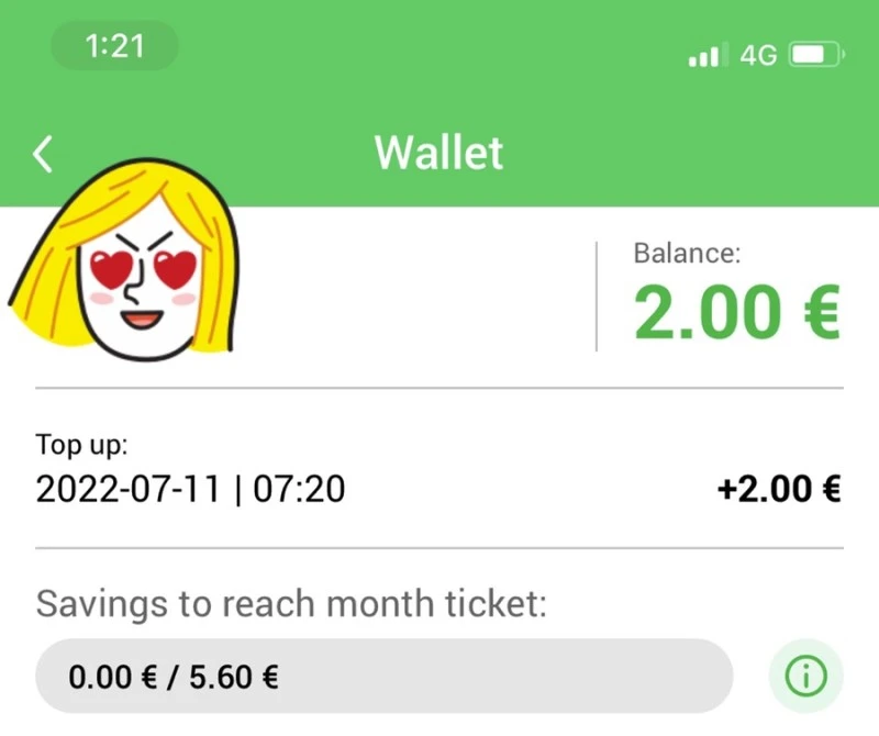 앱을 다운로드한 후엔 카드와 연동을 시켜야 하는데 엄청 간단하다, 그 이후 최소 2유로 이상 충전이 가능하고 사용할 때는 버스가 도착 후 특정 코드를 입력하면 티켓 구매가 된다는 시스템. 시간 계산을 잘못해서(배차 시간이 월요일인데도 길어) 나는 아래와 같이 다 다운로드하고 나서 택시를 탔다!!!
