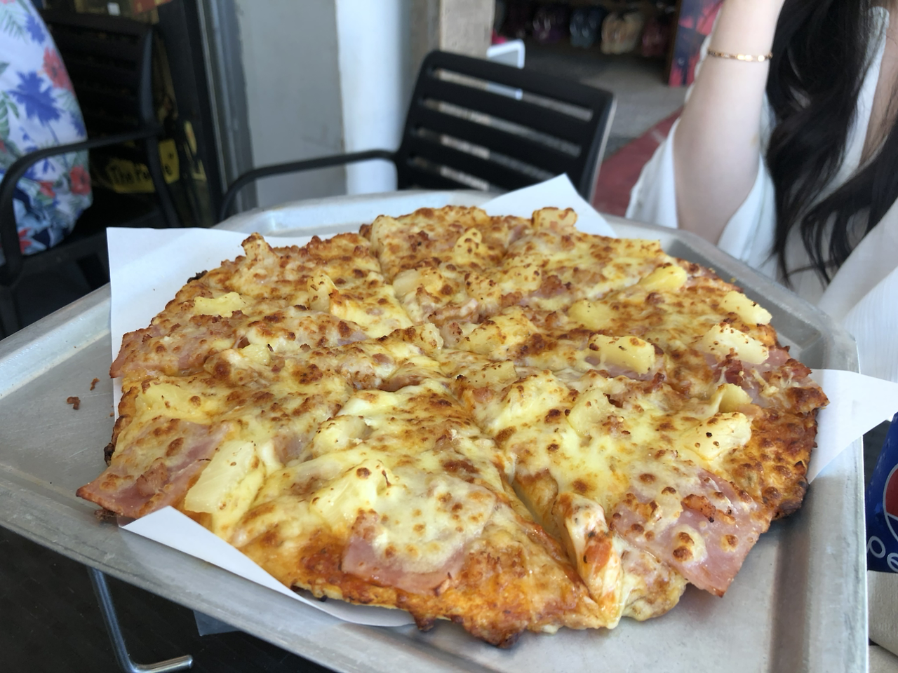 아침이니까 약간 애피타이저 느낌으로 하와이안 피자를 주문했다