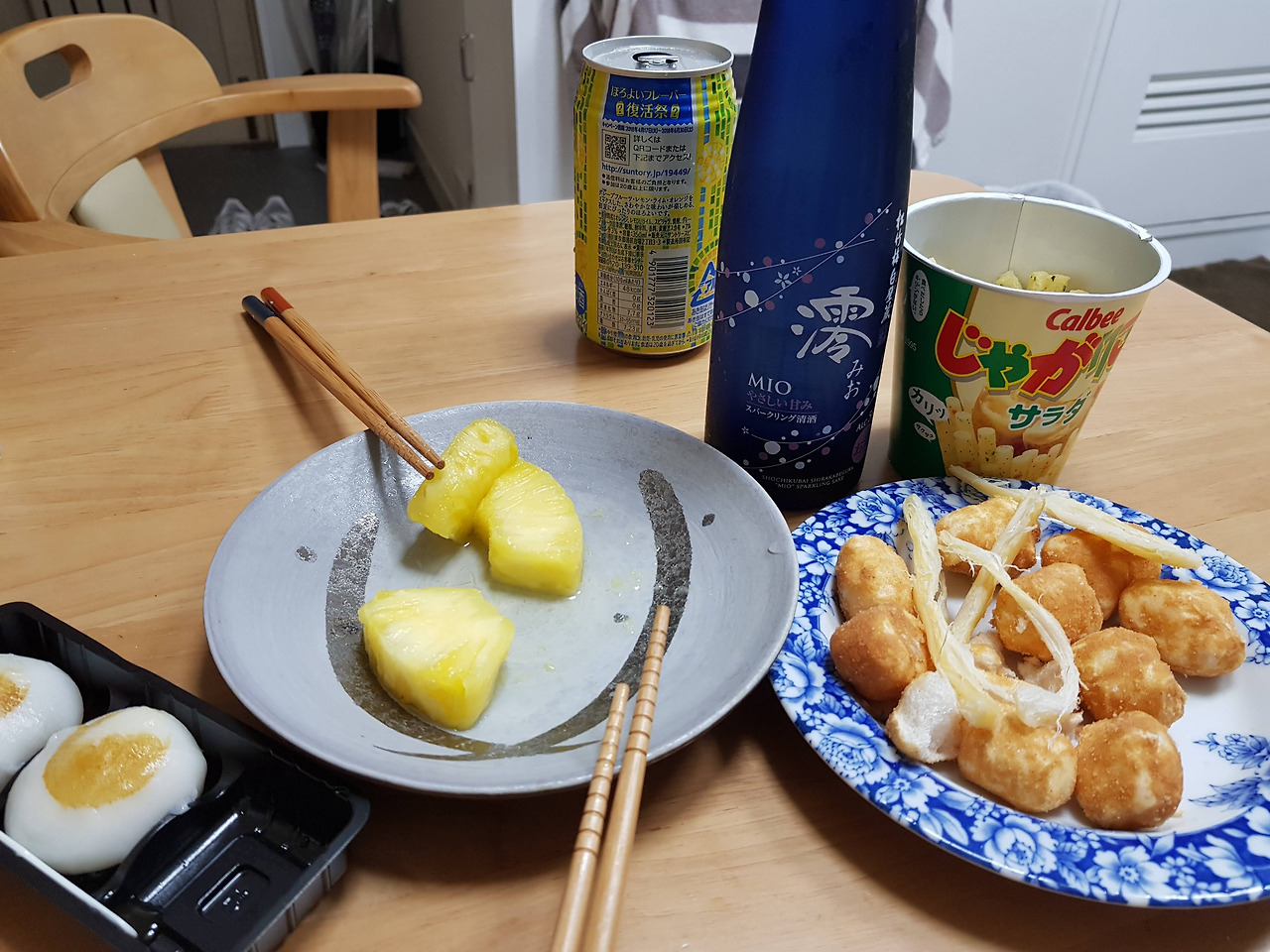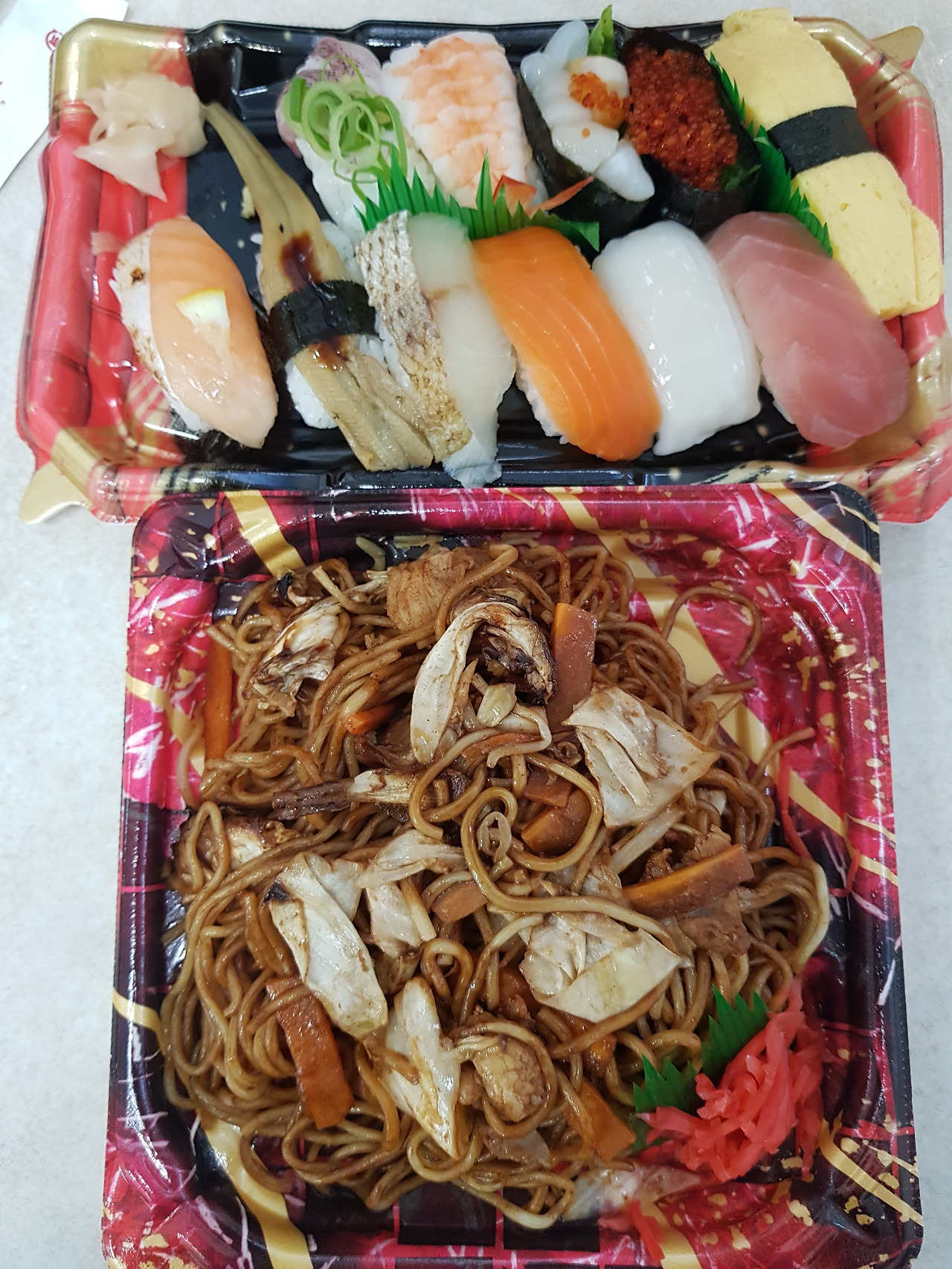 그렇게 나는 마트밖으로 나와 비를 맞으면서 스시와 야끼소바를 먹었다