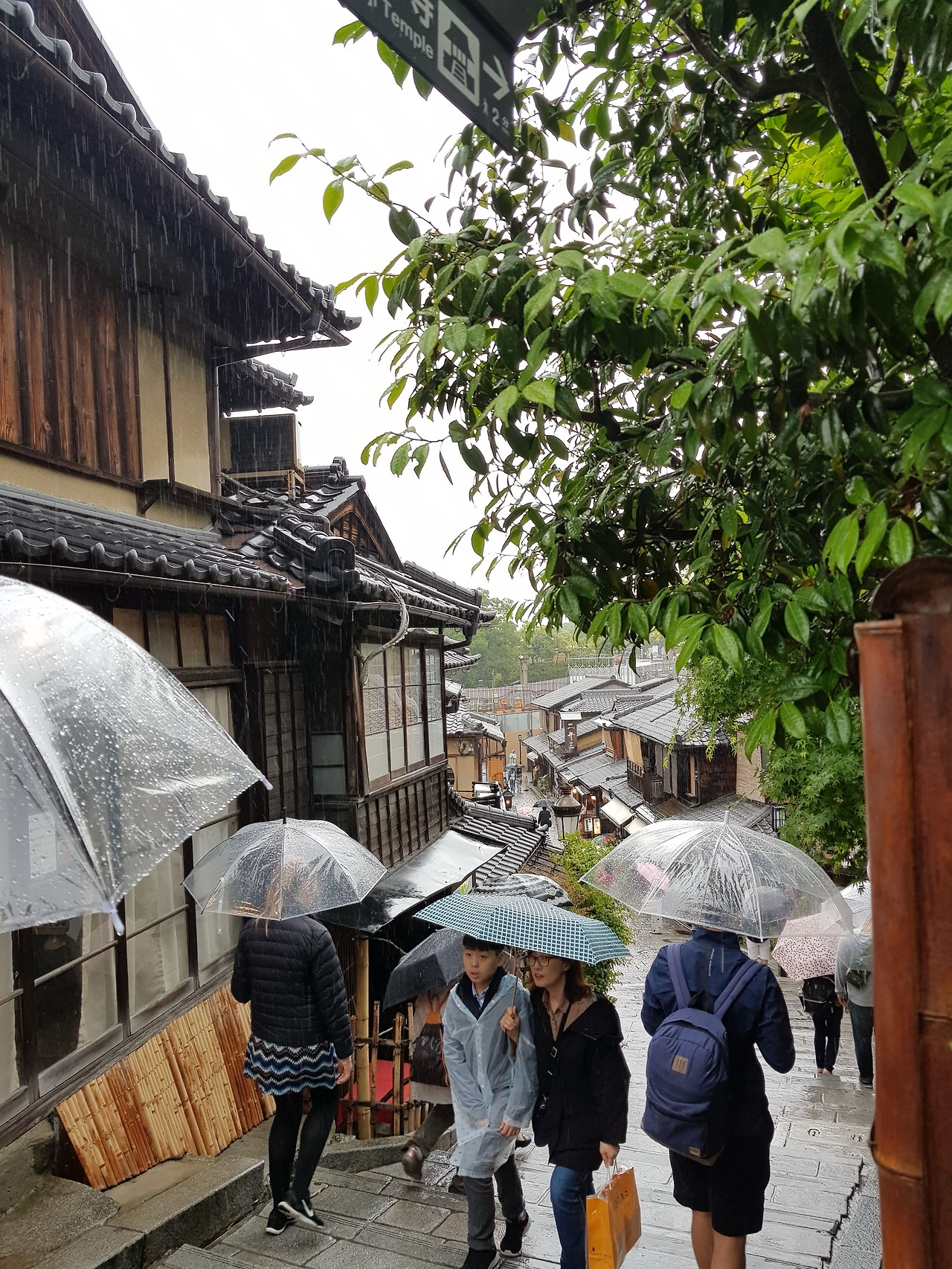 청수사라고도 불리는 이 불교사찰은 비가 내린 덕분이라 할까