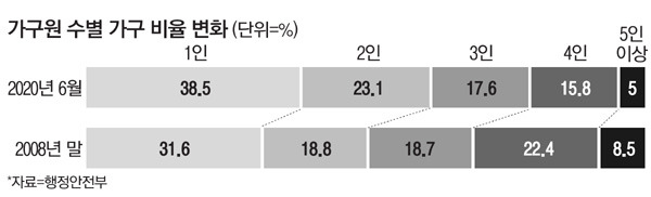 출처 : 매일경제, `나 혼자 산다` 38.5%…1인 가구 역대 최다(2020.7)
