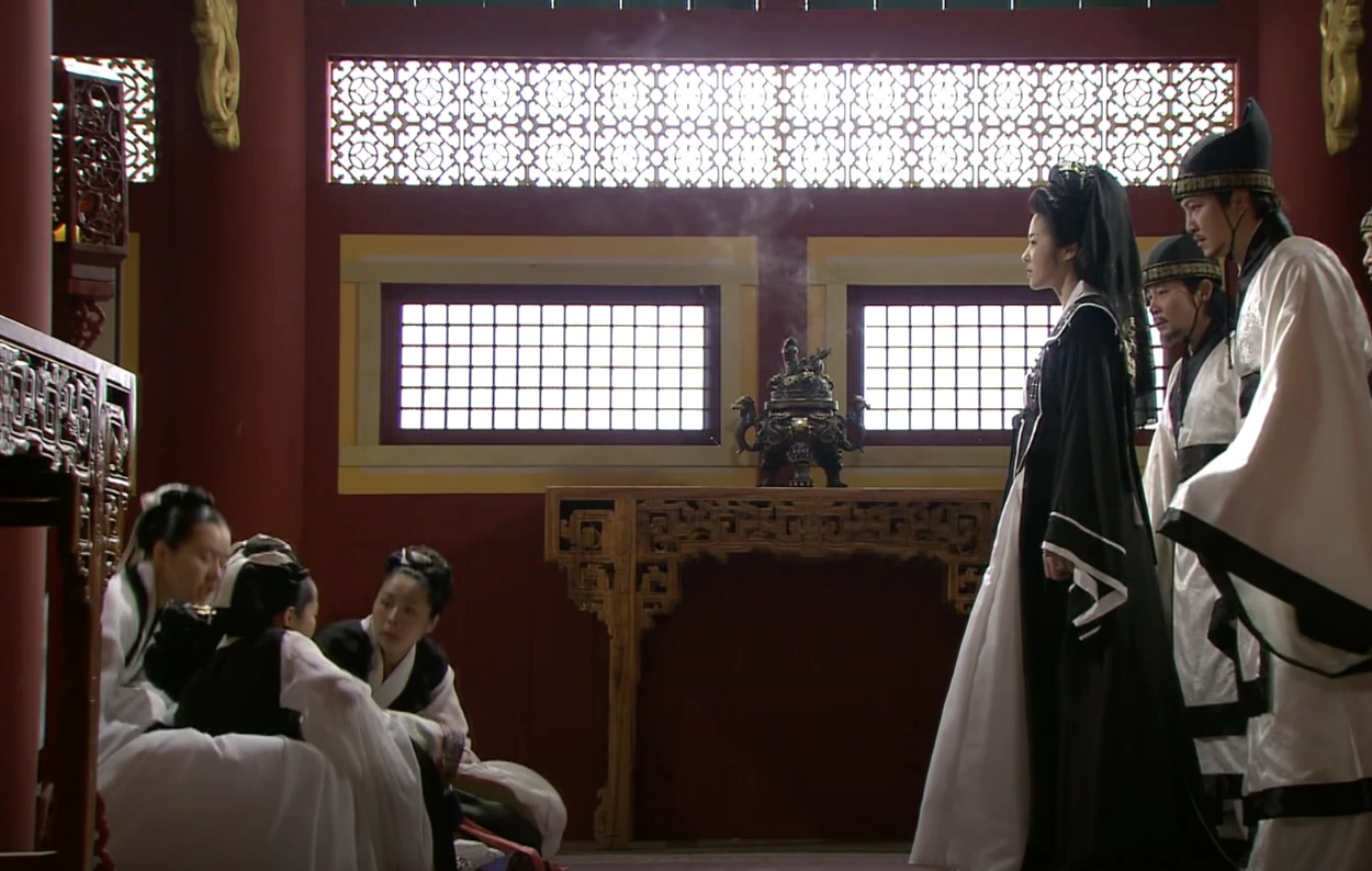 미실은 그대로 굳고 덕만은 손을 빼 그대로 미실을 지나쳐 간다. 이것은 미실이 결국 못 넘는 그 하나이다. 두 숙적의 운명을 가른 하나. 어린애가 당돌하게도 무엄을 가르치는데도 미실은 화가 난 게 아니라 성골이라는 두 글자에 속이 문드러질 뿐이다.