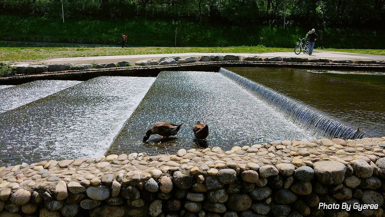 양재천에서 이만큼 다양한 볼거리와 휴식 공간을 제공하는 장소는 없는 것 같다. 사람들이 몰려드는 공간. 운동에 지쳐 물 한 모금 마시며 쉬는 러닝족, 애완견과 산책 나온 사람, 그 옆에서 애완견이 이쁘다고 강아지와 장난치는 아이, 고등학생 남자아이들의 자전거 부대, 인라인스케이트로 녹색 바닥을 도는 아저씨, 한편에서 배드민턴을 즐기는 엄마와 딸. 전부 가지각색으로 이 공간에서 몸을 움직인다. 한마디로 요약하면 건강한 공간이다. 이곳에서 불량한 사람들은 본 적이 없기 때문이다. 누군가에게는 콘서트홀이 되고 또 누군가에게는 댄스홀이 되며 앉아서 이야기 나눌 수 있는 데이트 장소. 우리 가족에게는 제1의 목적지이기도 하다. 걷기 싫어하는 아이들을 데리고 겨우겨우 걸어서 올 수 있는 장소. 걸으면서 느낀다. 처음부터 멀리 많이 걷는 건 불가능하다. 그냥 조금씩이라도 내가 걸을 수 있는 목표를 정하는 것. 특히 아이들과 함께 걷는다면 더더욱.