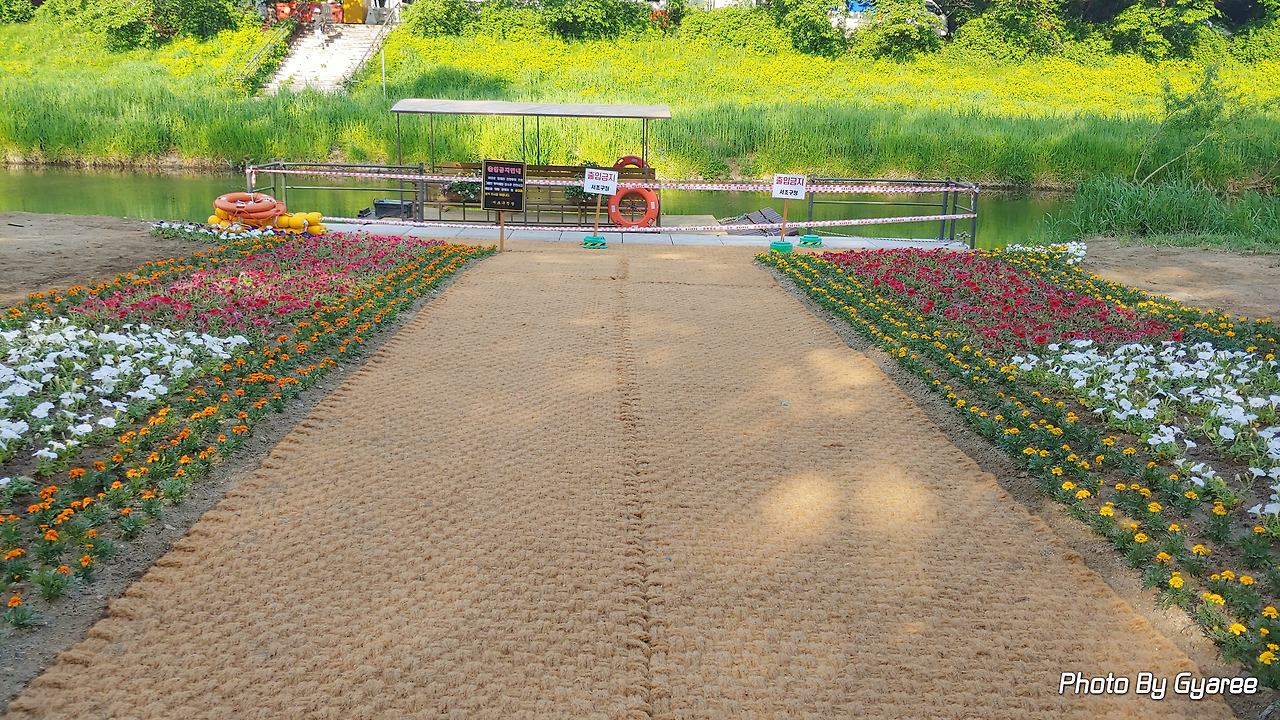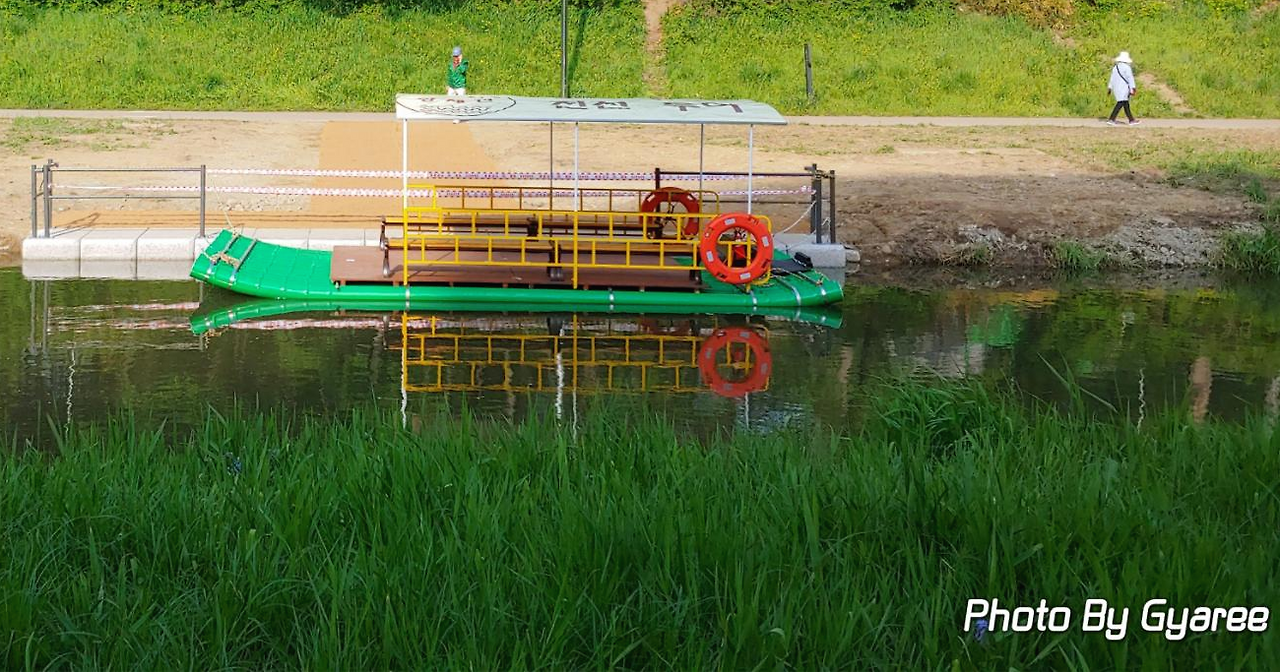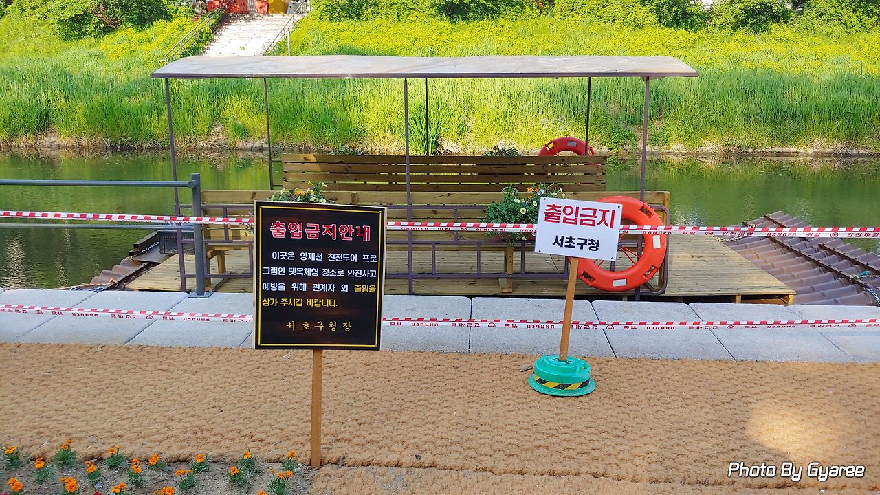 양재천에 별개 다 생겼다. 배가 뜨려면 적어도 이름에 '강(江)'자가 붙어야 하는 거 아닌가. 그런데 이곳은 그냥 하천이다. 하천 중에서도 수위가 아주 낮은 하천에 지나지 않는다. 이렇게 깊이가 낮은 곳에서 배가 뜬다고? 믿기지 않는 사실이지만 지금 이곳에 선착장이 만들어졌다. 게다가 선착장으로 내려가는 양옆으로 봄꽃으로 화려하게 단장까지 하고서. 몰려올 관광객을(동네 이웃) 기다리고 있다. 가까이 다가가서 살펴보니 배는 아니다. 뗏목이라는 문구가 눈에 들어왔다. 하기야 형체가 갖춰지기 전부터 배의 모습은 아니었으니까. 기다란 원통을 이어 붙인 바닥 부분만 보여 도대체 무엇을 만들고 있는지 궁금했다. 이제는 뗏목 위에 양옆으로 긴 의자까지 완성된 모습이 조만간 양재천을 떠다니는 모습이 그려진다. 사실 이 모델은 두 번째 모델이다. 첫 번째 모델은 뗏목 바닥이 녹색이었다. 어떤 이유에서인지 뗏목 디자인은 바뀌었고 처음부터 다시 만들었다. 아마도 촌스럽다는 콘셉트 때문이 아니었을지. 2차 모델이 나무 컬러로 변경된 것을 보면 대충 짐작된다. 이유야 어찌 됐든 양재천에서 뗏목을 탈 날이 얼마 남지 않았다는 사실이다. 잘만 운영한다면 양재천의 명물이 되지 않을까. 지금 양재천에는 명물이라 할 만한 존재가 없다. 양재천 하면 팍 하고 떠오르는 단어가 없다는 사실이 증명한다. 석촌호수 하면 벚꽃이 생각나는 것처럼. 양재천에도 수식어가 필요한 시점이다.