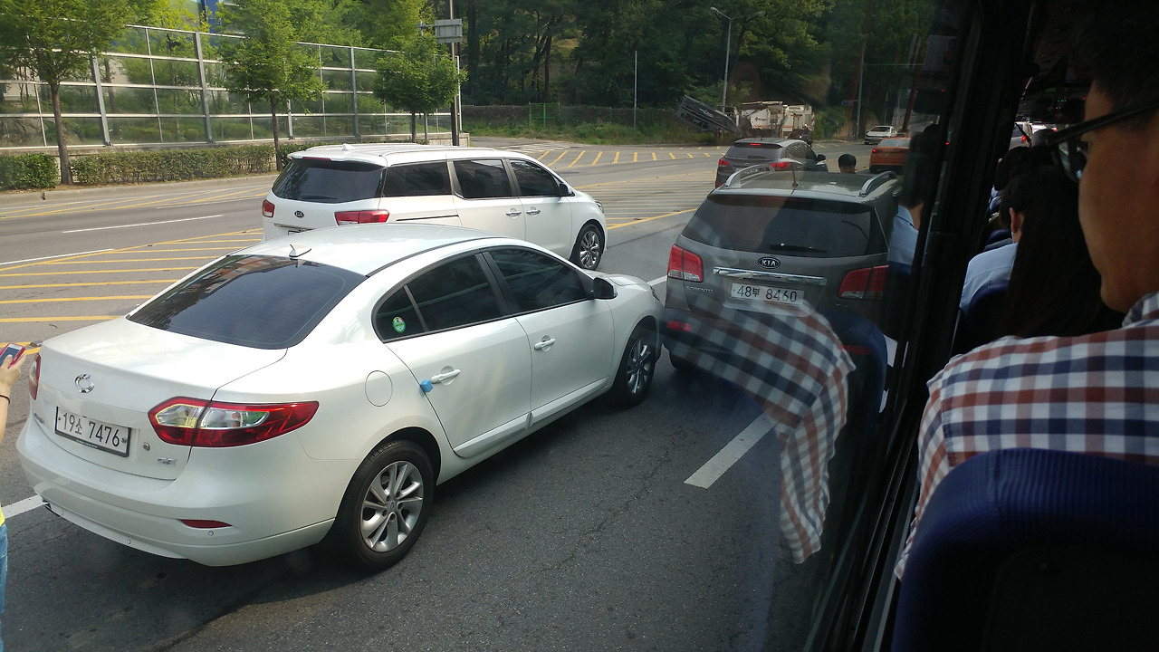 버스에서 한 번쯤은 버스 사고 경험을 한 사람들이 있을 것이다. 내가 타고 있는 버스의 사고든, 다른 자동차끼리의 사고든 사고가 발생한 곳에서 싸우는 사람들의 풍경은 낯선 그림은 아니다. 누구누구의 잘잘못을 떠나 무조건 소리부터 지르고 봐야 하는 것이, 교통사고가 났을 때 대처하는 방식이라고 배우지도 않았을 텐데. 일단 한 번 지르고 본다. 자신의 정당함을 큰소리치면 먹힐 것으로 생각하는 듯. 뭐 옛날에야 큰소리치는 사람이 많은 덕을 본 것도 사실이었던 시절이 있다. 그런 경험담이 입으로 입으로 전해 내려오며 지금까지도 화부터 내고 쌍욕을 퍼붓는 사람들이 더러 보인다.