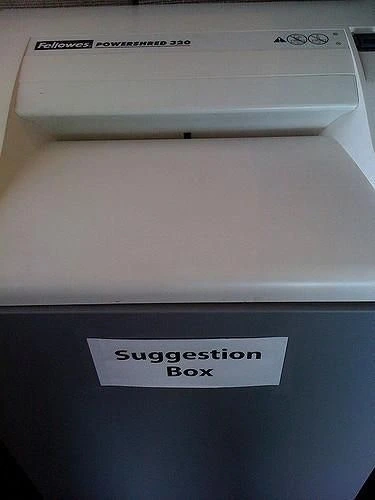 당시, 동료들도 무척 유쾌하고 좋았습니다. 위의 사진은 2008년 개봉한 Disney 산하(!) Pixar의 WALL-E라는 애니메이션을 보고서 회사 동료들이 회사 커피 머신에 COFF-E라고 장난스럽게 이름을 붙여놓은 사진입니다. 아래 사진은, 회사의 문서 파쇄기에 동료들이 장난스럽게 건의함(Suggestion Box)라고 붙여 놓은 거고요.