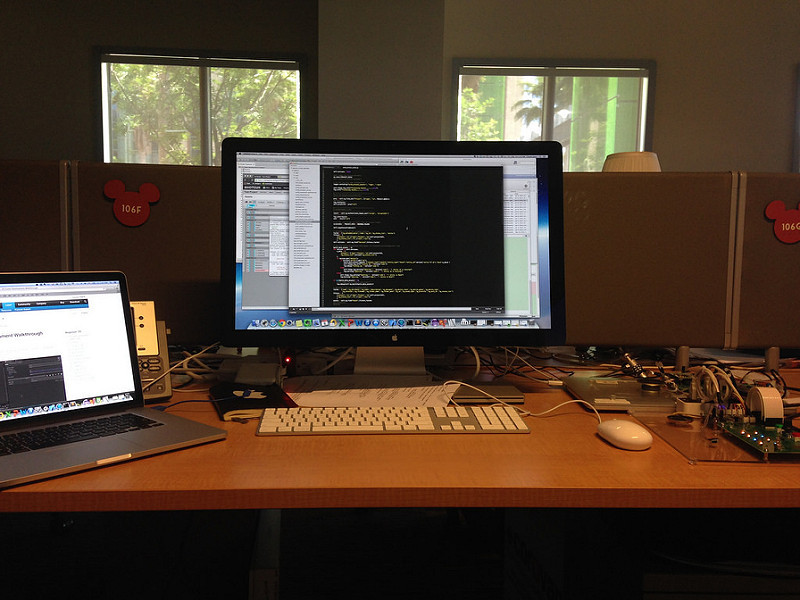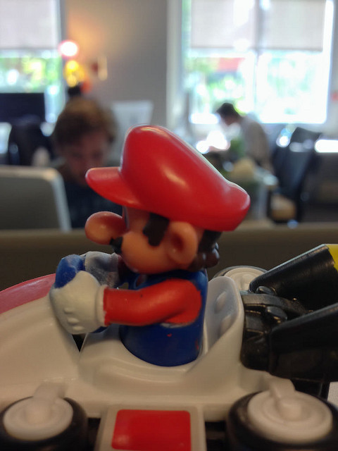 돌아보니 2014년은 이 새로운 프로젝트를 개발하며 바쁘고 즐겁게 보냈던 것 같아요. 2015년 출시 예정이었기 때문에 무척 정신없이 지나갔어요. 제 모니터 위에 얹어 놓았던 마리오 카트 인형 너머로 보이는, 일에 몰두하고 있는 동료들의 모습입니다. 이 사진을 보니 이 시절이 그리워지네요...