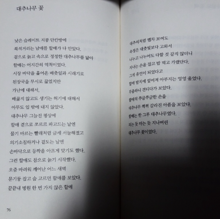 엄마가 카톡으로 시 한 편을 보내며 말했다. “외사촌 동생중에 시인이 있는데, 엄마의 외할머니(외증조모)에 대한 시를 썼어. 지금보니 엄마(외할머니) 얘기처럼 읽혀서 눈물났어.”