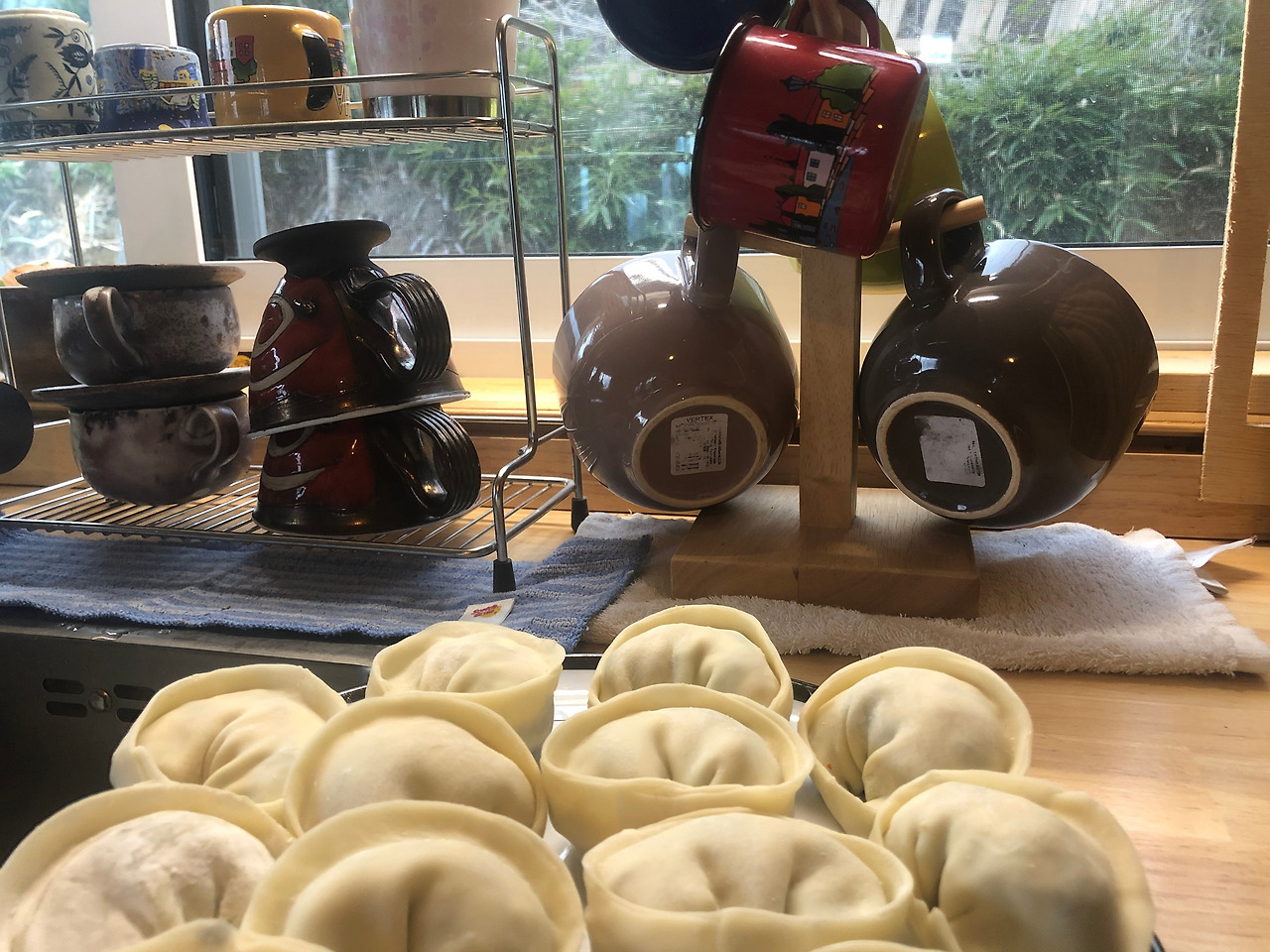 엊그제 나물을 캐다가 허리에 조금 통증이 생기는 바람에 광민이 바깥일을 혼자 하고 있어서 만두소 준비를 최대한 혼자 했다. 그런데 하나도 힘들지 않다. 우리가 한두 번 먹을 양만큼만 한다고 생각하니 너무 쉽다.(한 번에 많은 양을 하는 것만 아니면 뭐든 별로 어렵지 않다.) 해동된 만두피로 광민과 만두를 빚는데 너무 행복하다. 우리 손 끝에서 예쁜 만두가 나온다. 모두 22개. 한 번에 찔 수 있는 최대 양 13개만 먹어도 둘이서 충분하다. 우리 입맛엔 딱인데 이웃과 나누기엔 양도 부족하고 좀 싱겁다.(다음번엔 김칫국물을 덜 짜내도 좋을 것 같다.) 9개는 냉동실에 우리의 비상식량으로