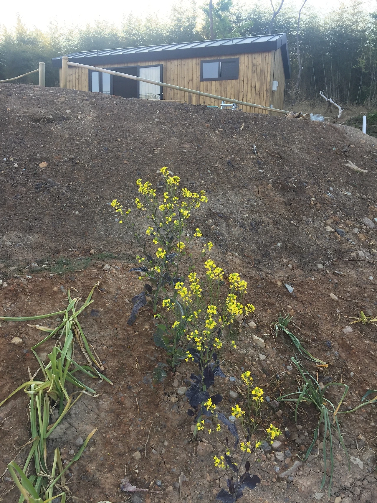지난해 4월 황량한 집터에 갓을 몇 포기 옮겨 심어 놨었다. 싱싱하고 무성한잎 만으로도 만족스러웠는데 어느 날 유채꽃 닮은 노란 꽃이 탐스럽게 피었다. 꽃들은 우리 부부의 사랑을 한 몸에 받으며 날마다 환하게 피어났다. 그렇게 우리 정원의 첫 번째 주인공이 되었지만 동네 어른들은 먹지도 못할 갓을 심어 놨다고 웃으셨다. 그래서 난 우리 집 갓은 못 먹는 갓인 줄 알았다. 지금 돌이켜 생각해 보니 세서 못 먹는다는 말이었다. 우리 집에서 꽃을 피운 갓은 마음껏 씨를 퍼트려 정원에 가득하다. 이제 너무 늦기 전에 갓을 최대한 먹어야 한다.