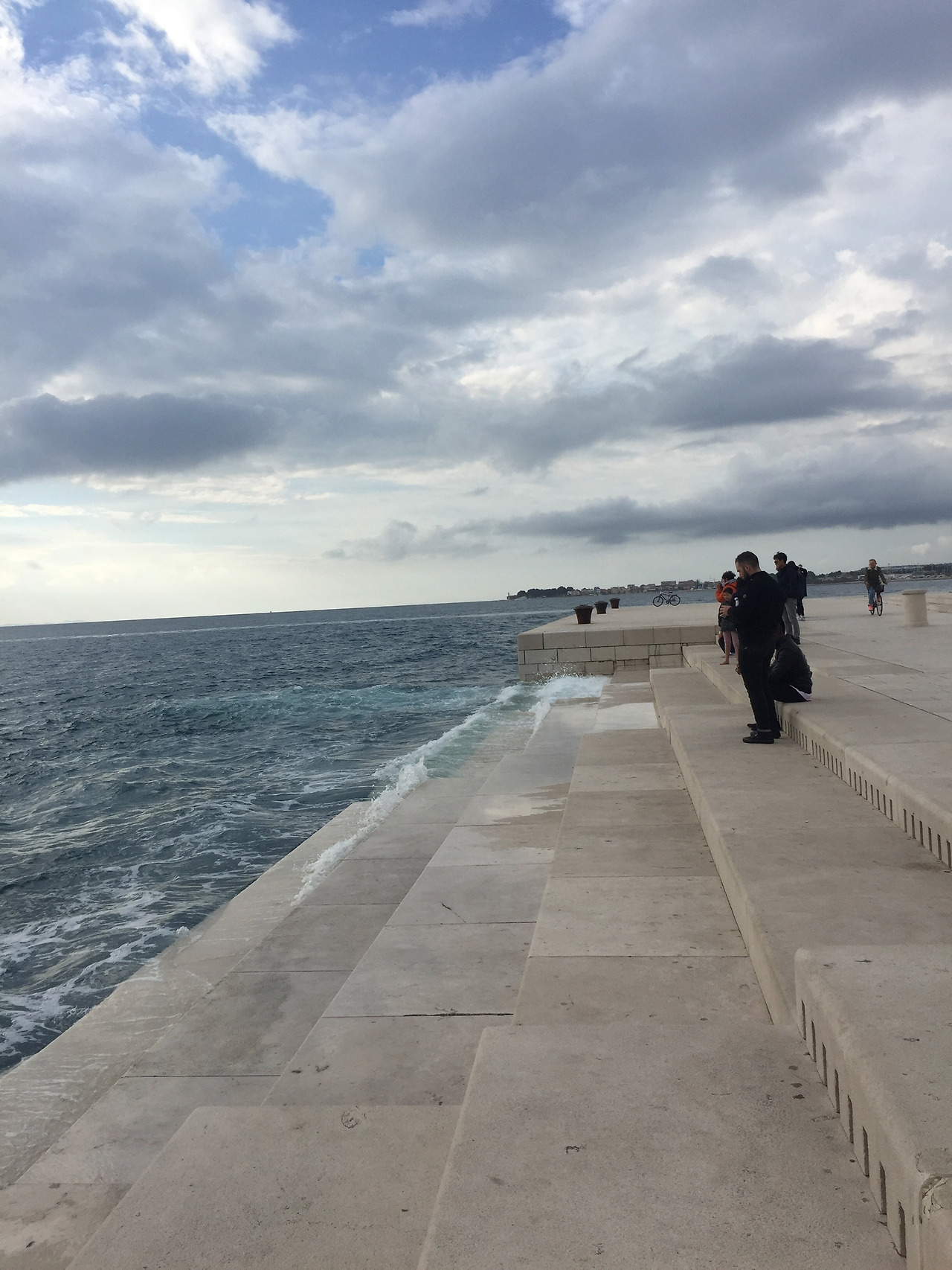 그러던 중 자다르에서 한 한국 가족을 만났다. 회사원인 남편분이 영국 주재원으로 발령이 나서 틈만 나면 캠핑카로 유럽 곳곳을 누비고 있다고 했다. 주로 아이들이 자는 밤을 이용해 이동하고 낮에는 중요한 지점에서 여유 있게 즐긴다고 했다. 우리가 만난 곳은 낙조로 유명한 해변이었다. 넓은 대리석 계단에 설치된 파이프오르간에서 바람과 파도의 연주가 신비스럽고 매력적으로 들린다. 영화 속 한 장면에 들어가 있는 기분이었다.