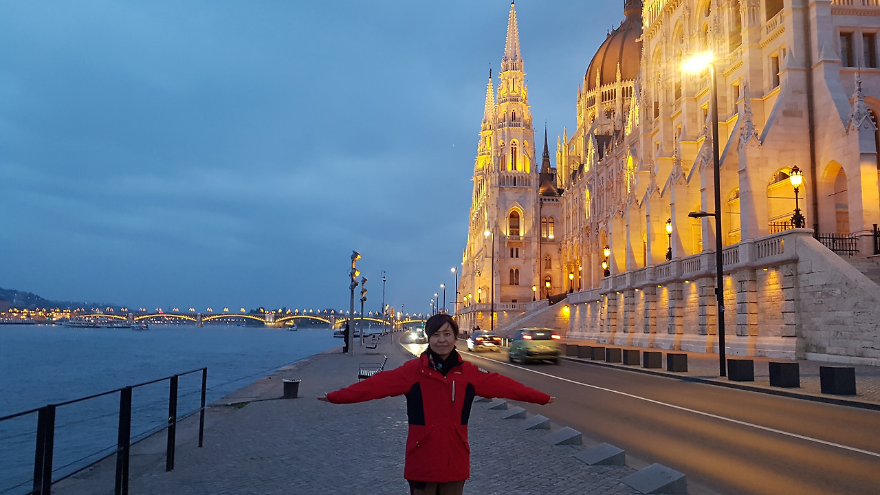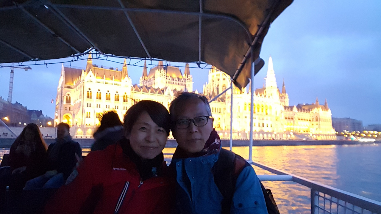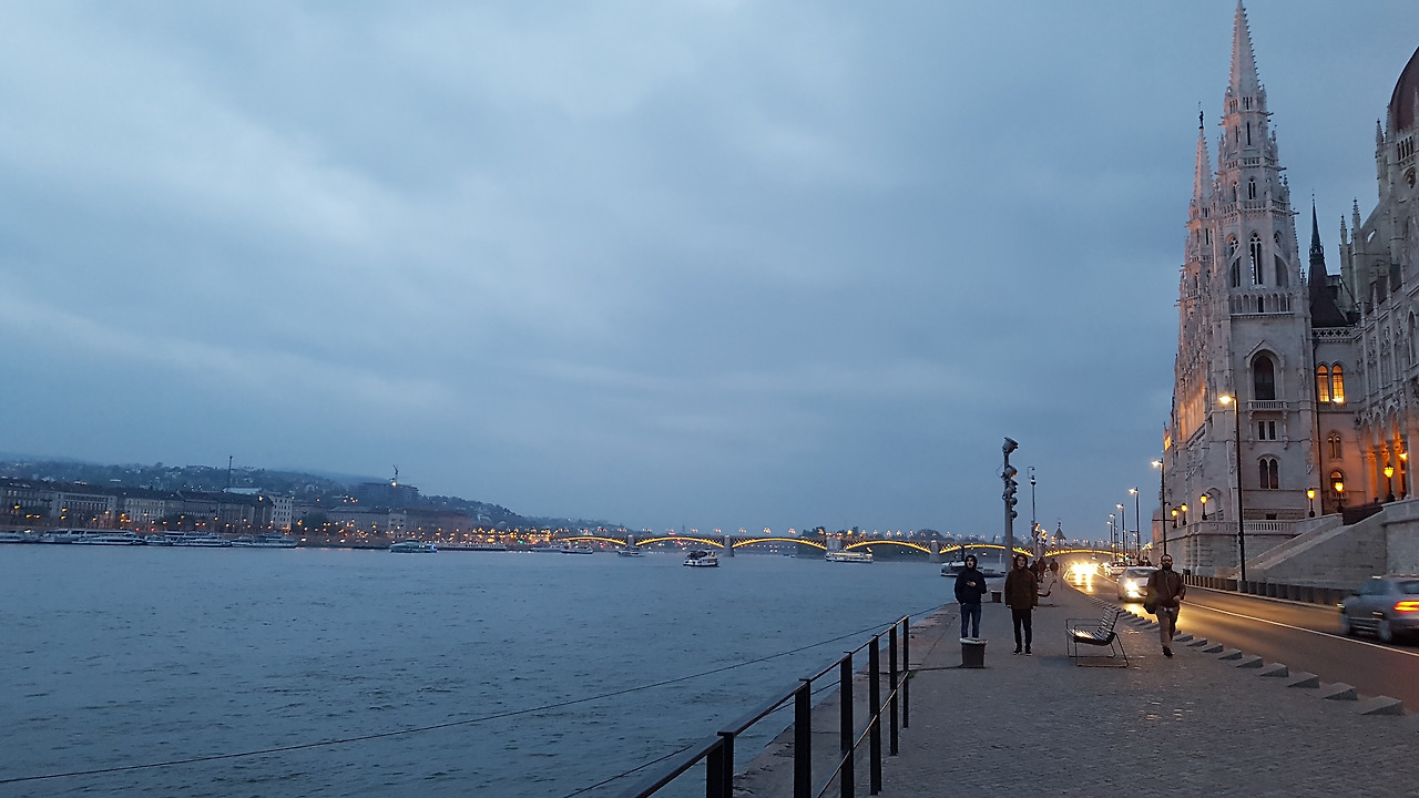 구경을 마치고 드디어 배를 타러 가기로 했다. 중간에 여행 안내원을 만나 장소 확인도 했으나 선착장이 썰렁하다. 잠시 후 배가 도착하긴 했으나 자신들의 배는 클로즈했다며 옆 선착장으로 가라고 한다. 나는 여행의 책임자답게 그 직원에게 다시 한번 장소를 확인하고 옆 선착장으로 갔다. 하지만 옆 선착장은 사용하지 않는 곳처럼 썰렁했을뿐더러 출입구에 자물쇠까지 채워져 있었다. 그 직원을 원망했지만 마침 보이는 국회의사당 건물이 배 타기 실패를 잊을 만큼 아름답다. 사진을 찍고 건물을 구경하다 돌아서 가는 길에 예쁜 모습을 다시 보려고 잠깐 뒤를 돌아보았는데 야경이 들어오기 시작한다.