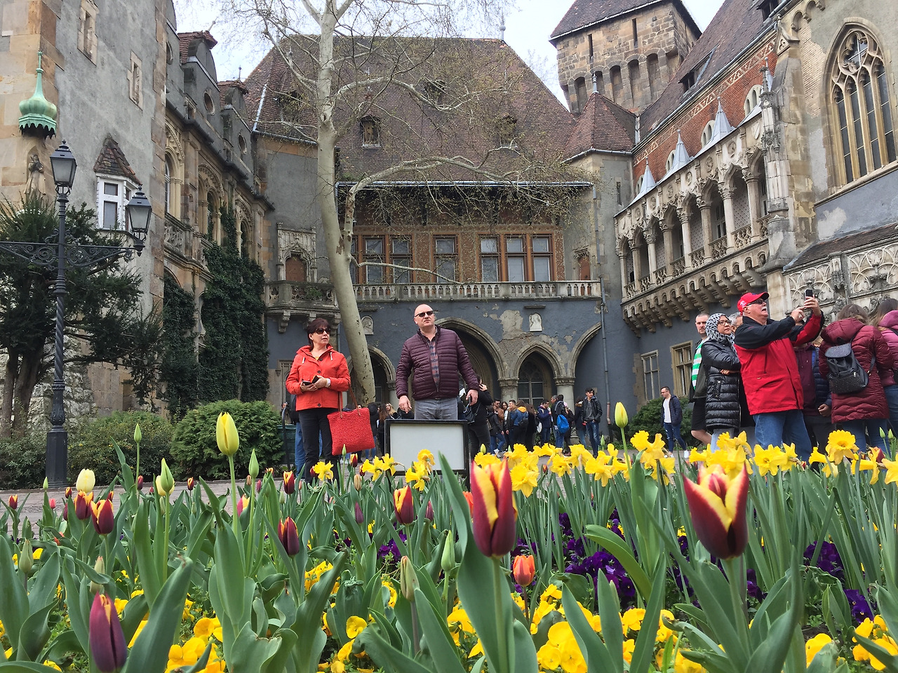 온천에서 돌아오는 길에 헝가리에서 가장 크다는 시립 공원에 들르기로 했다, 거기에는 혁명광장과 드라큘라 성을 따라 만들었다는 궁전과 호수 등이 있었다. 넓은 만큼 많은 단체관광객들이 있었다. 가끔씩 해가 나와서 예쁨 꽃들을 넣은 사진을 찍을 수 있어서 더 기분 좋은 산책을 할 수 있었다.