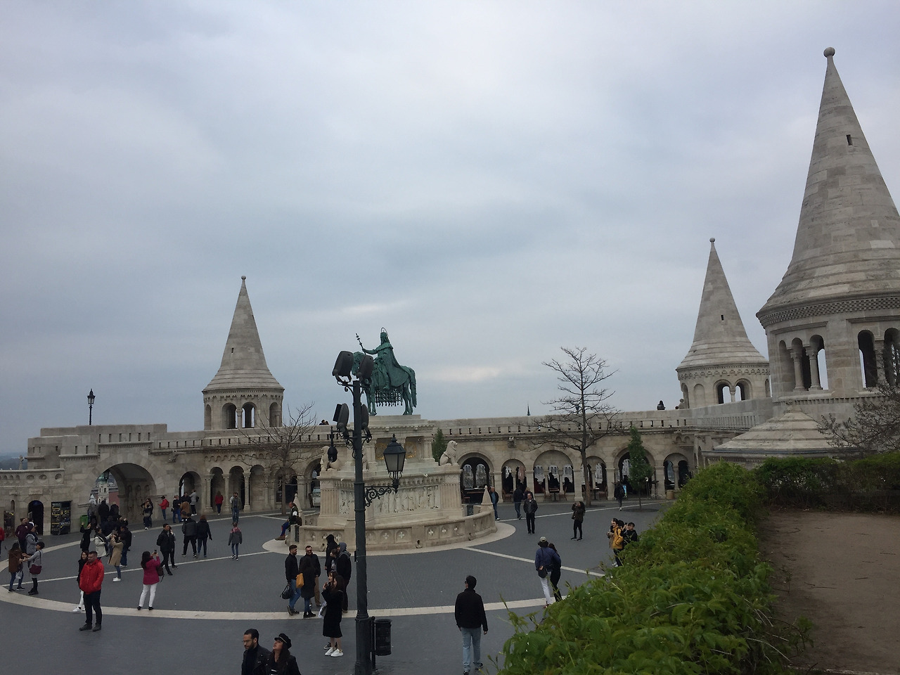 어부의 요새와 궁전은 언덕 위에 있고 가는 길에 간식거리를 파는 아저씨가 보인다. 맛있는 빵과 따끈한 커피가 비싸지 않은 가격이다. 우리가 딱 원했던 길거리 음식이다. 이럴 땐 예상치 못한 선물을 받는 기분이 든다. 언덕 위에 오르니 새로운 세상이 펼쳐진다. 동화 속의 한 장면 같았는데 알베르 벨로의 지붕이 생각나는 뾰족 지붕이 귀여웠다.