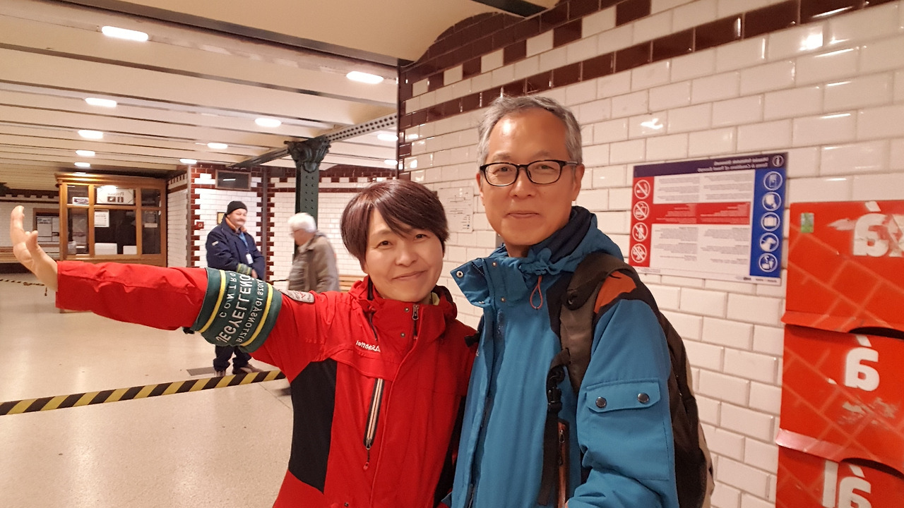 그리고 그곳에 가기 위해 내가 타기를 원했던 귀여운 1호선을 탈 수 있었다. 120년이나된 지하철이 궁금했었다. 플랫폼 벽에 붙여놓은 거울 등 신기한 구경거리를 사진에 담는 나를 보고 제복에, 완장까지 찬 사람이 다가와 굳은 표정으로 왜 사진을 찍냐고 물어보았다. 깜짝 놀라 당황했는데 알고 보니 관리인 아저씨가 장난을 친 것이다. 놀라는 내 모습에 호탕하게 웃으며 자신의 완장을 벗어 내 팔에 끼워준다. 얼떨결에 재미있는 기억과 사진까지 남길 수 있게 되었다.