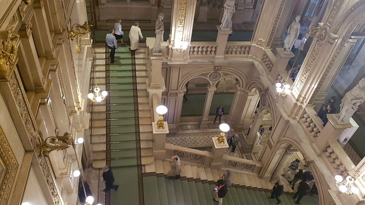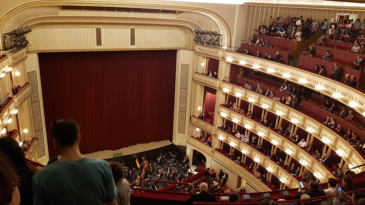 어제 골든홀에서 스탠딩 감상을 경험한 것은 참 잘한 일이다. 표를 구하는 과정이 좀 어렵기는 했지만 오늘의 공연 환경이 훨씬 좋다는 것을 알 수 있었기 때문이다.(어제는 빈 음악협회에서 바로 살 수 있었지만 오늘은 상대적으로 훨씬 싼 표라 그런지 건물의 뒤 쪽 아주 찾기 힘든 곳으로 가야 했다). 극장 앞에서 30유로에 좌석을 살 수 있다는 판매원들이 있었지만 우린 아예 관심이 없었다. 3유로에 입장할 수 있는 스탠딩 감상을 다시 시도해 보기로 했기 때문이다. (운이 좋으면 적당한 곳에 앉을 수도 있다.) 마침 서둘러 가는 사람들과 표를 들고 나오는 사람들이 보여서 우리는 어렵지 않게 아무런 표시도 없는 문으로 들어갈 수 있었다. 그 안엔 많은 사람들이 줄을 서있었고 우리는 아슬아슬하게 표를 살 수 있었다. 짐을 맡기는 곳도 어제와 달리 무료이다. 부자들이 베풀어 준 품위 넘치는 배려다. 극장 안에 좋은 스탠딩 자리에는 자신의 옷을 묶어 둔 사람들 덕분에 자리를 찾기가 힘들었다. 다행히 광민이 무대가 정면으로 보이는 가장 좋은 자리를 찾아내었다. 하지만 알고 보니 그곳은 휠체어 석이었다. 결국 옆으로 아래로 또 뒤로 이동당해야 했지만 그래도 무대를 보는데 아무 문제가 없었다. 영어자막도 잘 볼 수 있는 자리에서 감상을 시작할 수 있었다.