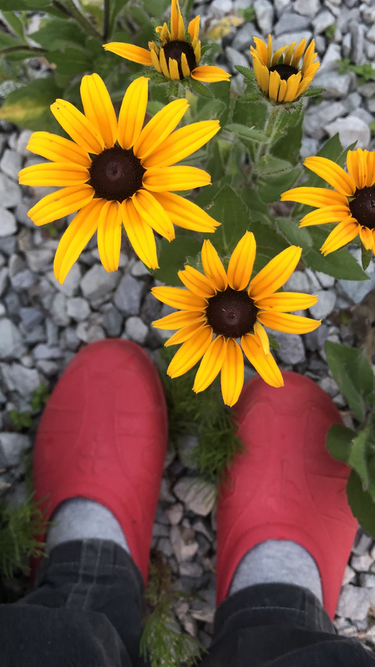 금계국과 데이지를 잘라내고, 그 안에서 자라고 있던 쑥이며 잡초들도 제거했다. 그런데 발밑에 해바라기를 닮은 꽃이 내 발을 붙잡는다. (며칠 후 이 작아 보이는 꽃이 금계국보다 훨씬 더 마당을 덮고 있다.)