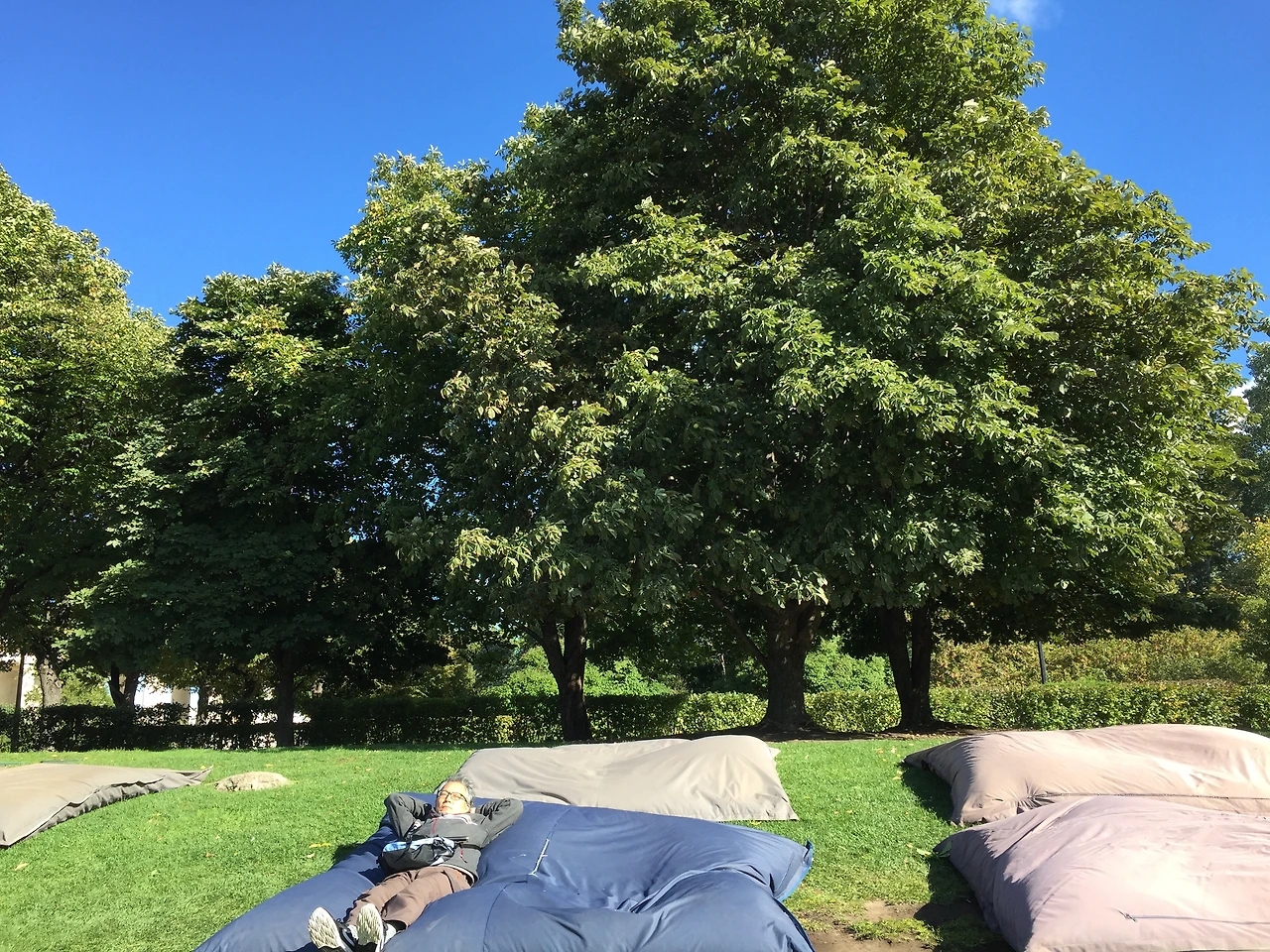 카페에서 나오니 햇살이 훨씬 따뜻하다. 그런데 남편이 넓은 잔디 언덕 위에 매트를 발견했다. 잔디 위에 자유롭게 깔려있는 커다랗고 푹신한 매트는 나에게 마지막 남아있던 러시아의 딱딱한 이미지를 한꺼번에 날려버린다. 우리는 그 위에 벌렁 누워 드넓은 하늘과 뭉게구름을 맘껏 즐겼다.